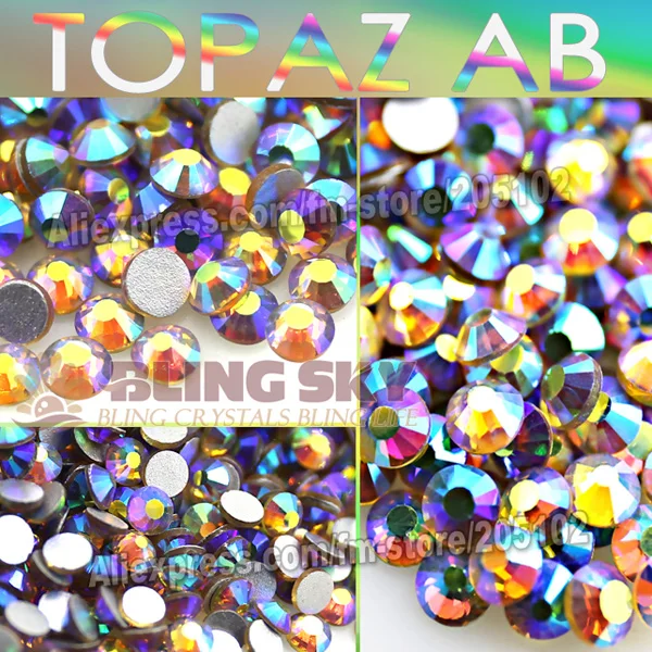 Topaz AB SS3 SS4 SS5 SS6 SS10 SS20 SS30 для ногтевого дизайна Стразы блестящие стразы с плоским основанием хрустальные украшения DIY без горячей фиксации