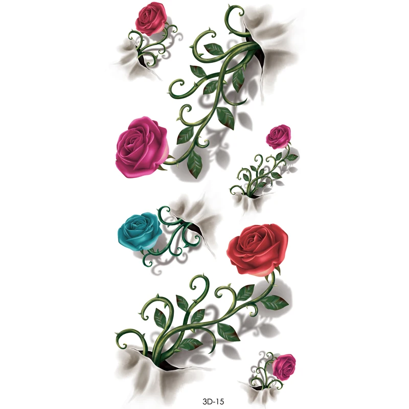 Женский 3D красочный водостойкий рукав для боди-губ, художественные наклейки сделай сам, блестящие Временные татуировки, мини-тату с цветком розы