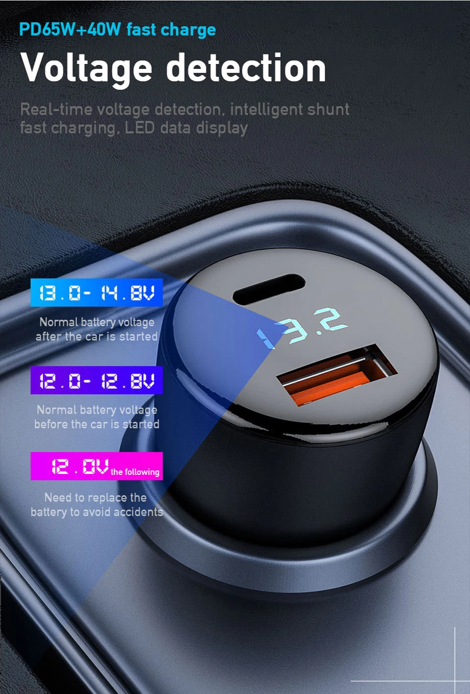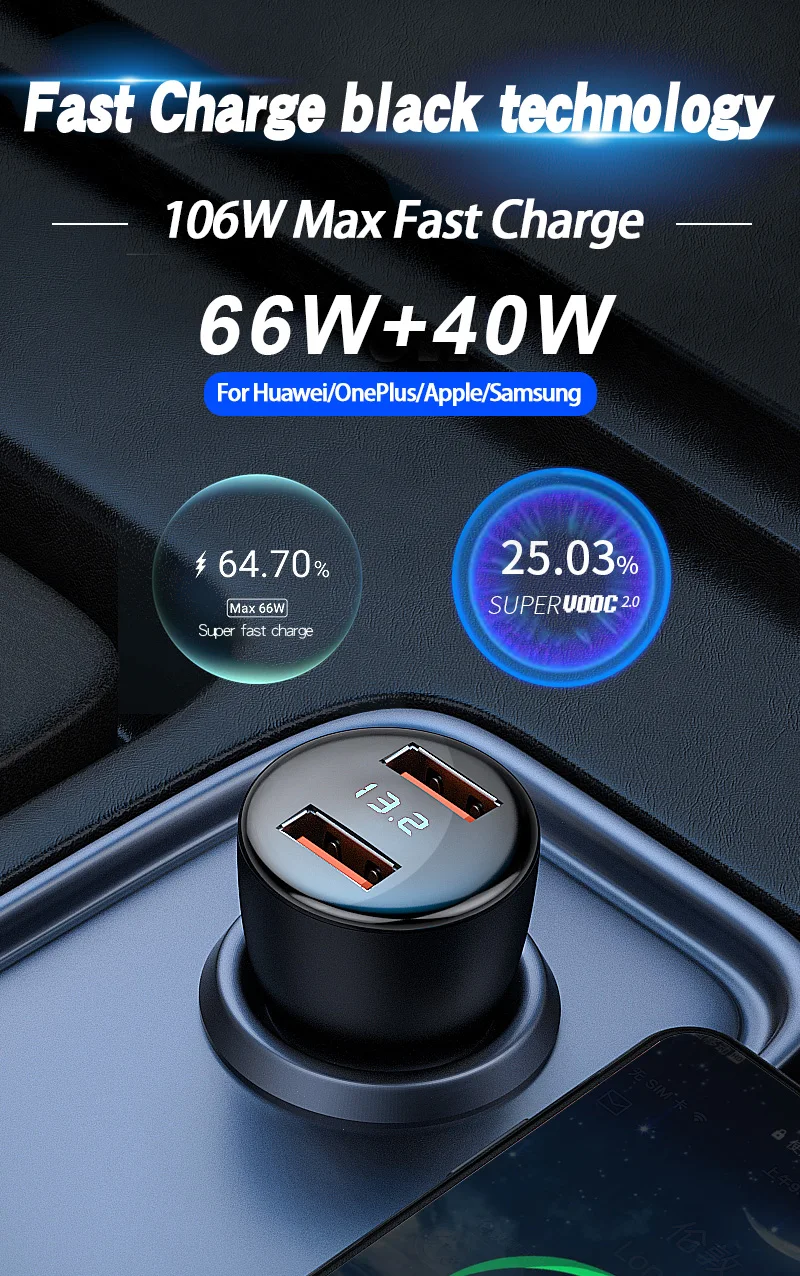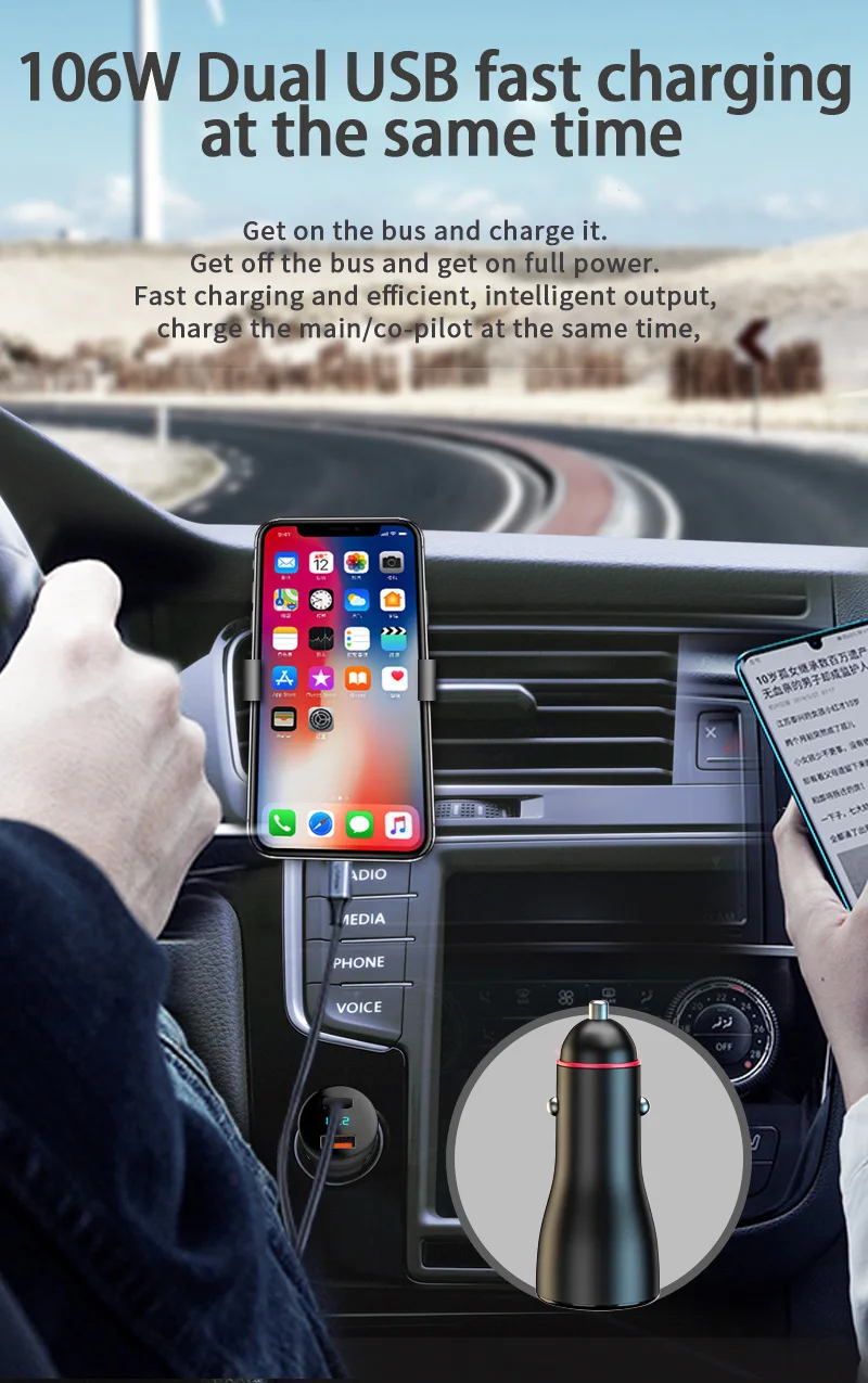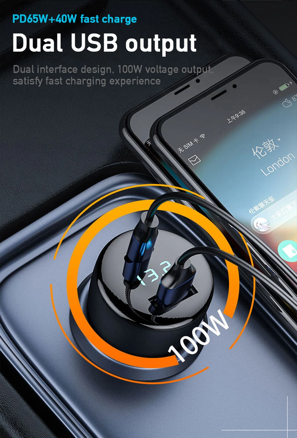 Автомобильное зарядное устройство USB 106 Вт Dual USB Quick Charge 105 Вт 65 Вт QC 3.0 Зарядное устройство USB-C для iPhone Samsung Huawei Xiaomi 65 Вт PD Быстрая зарядка