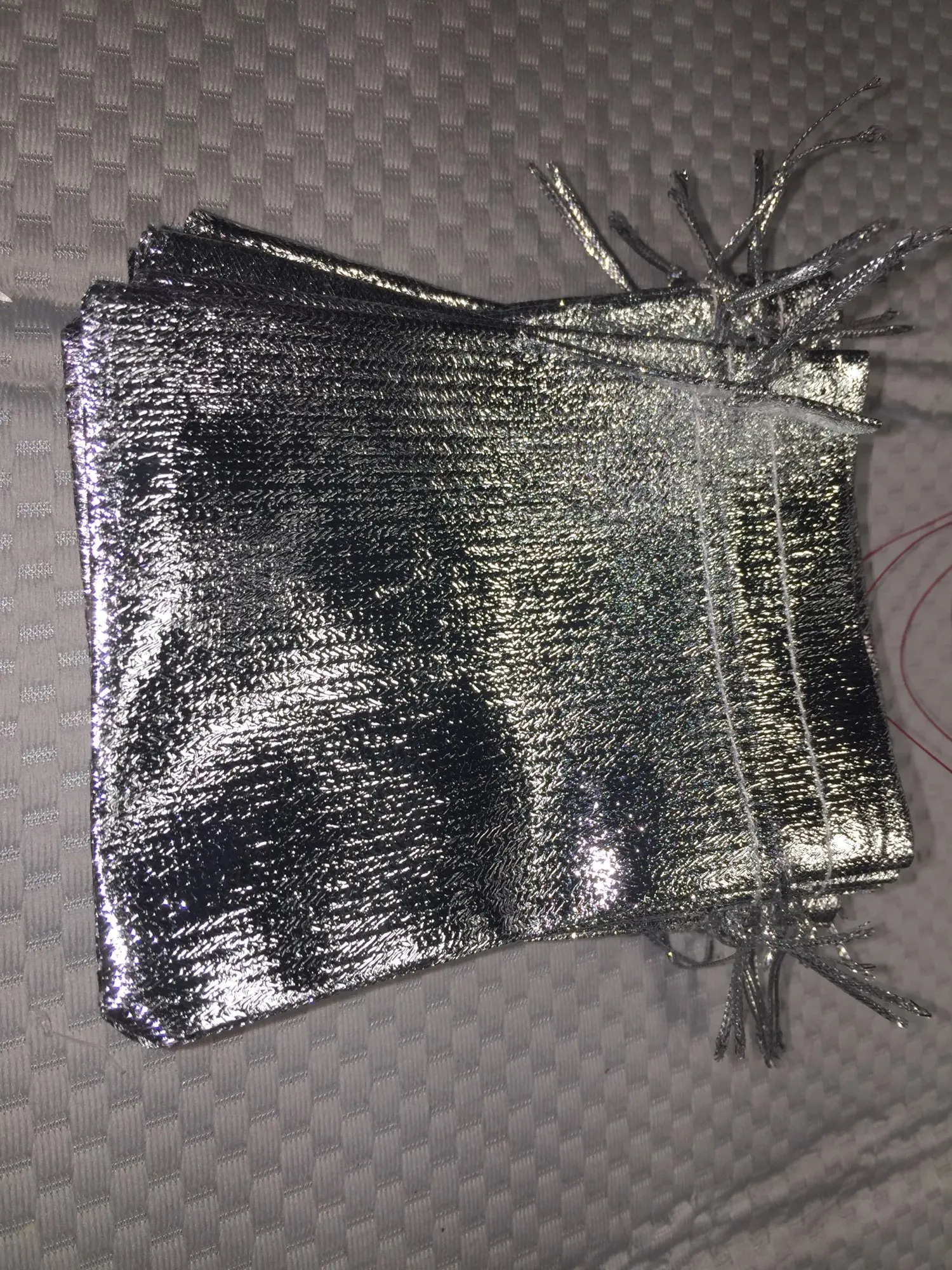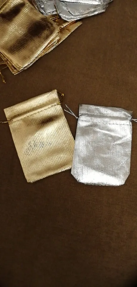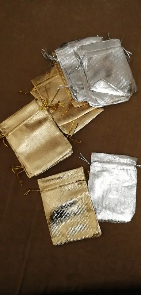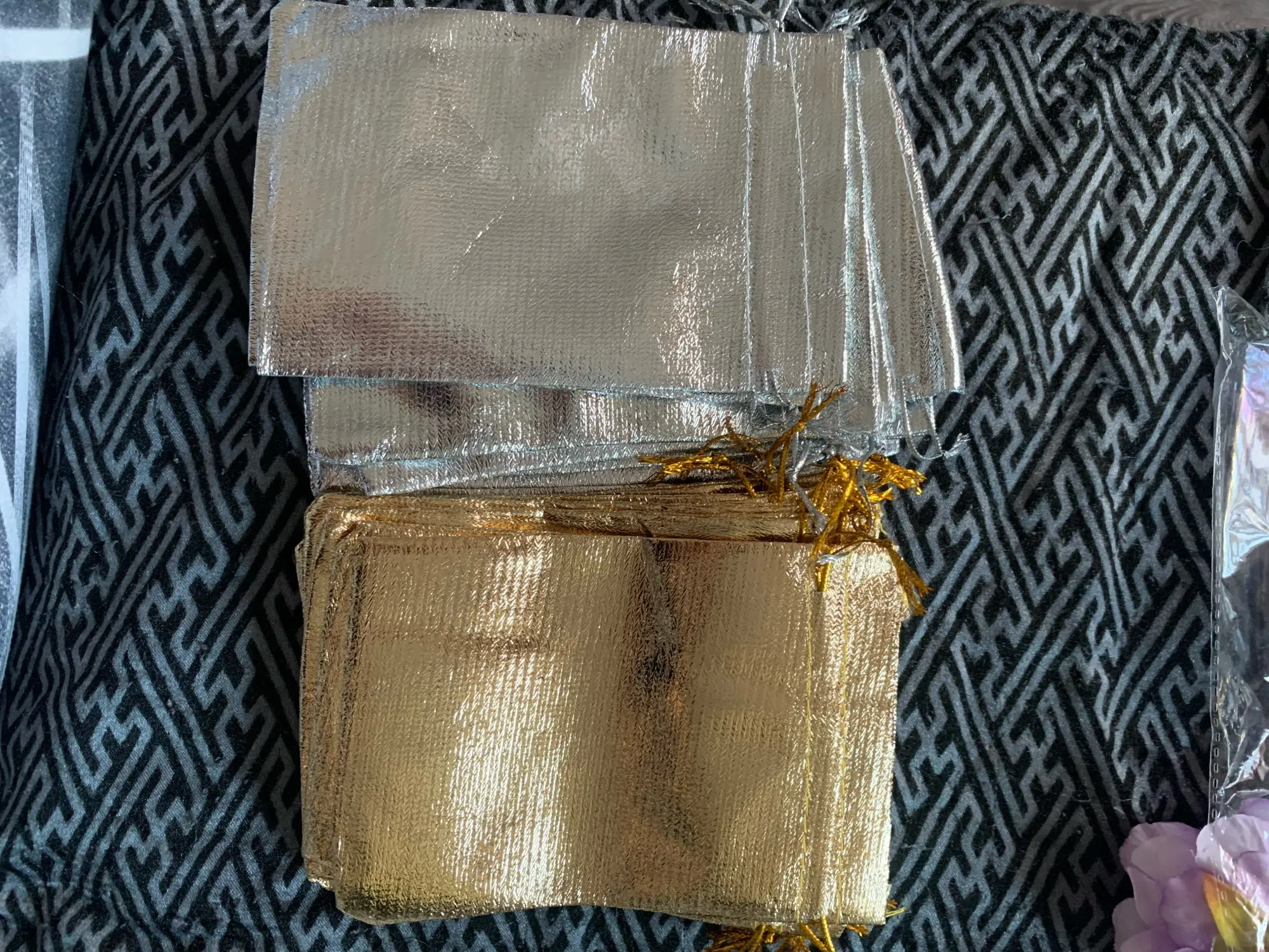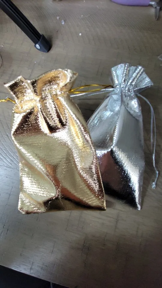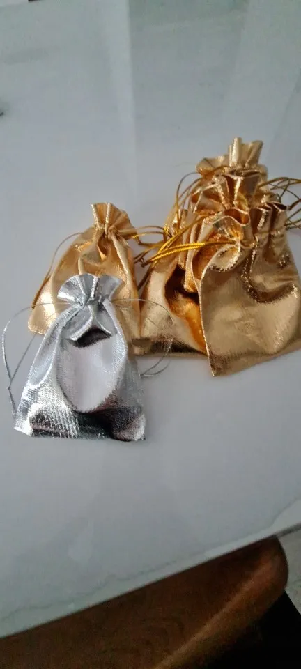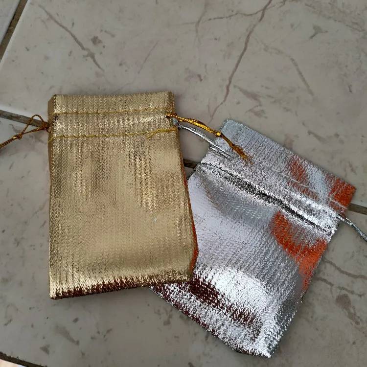 25 шт.лот упаковка ювелирных изделий Серебристая Золотая фольга ткань Шнурок Бархатный мешок 7x9 см 9x12 см 10x15 см свадебные подарочные пакеты и мешочки