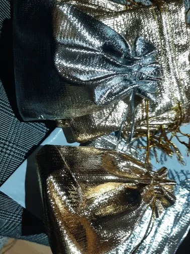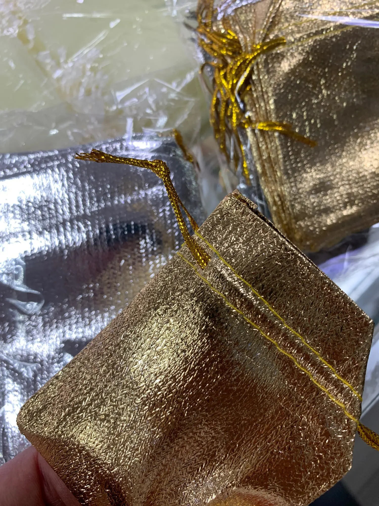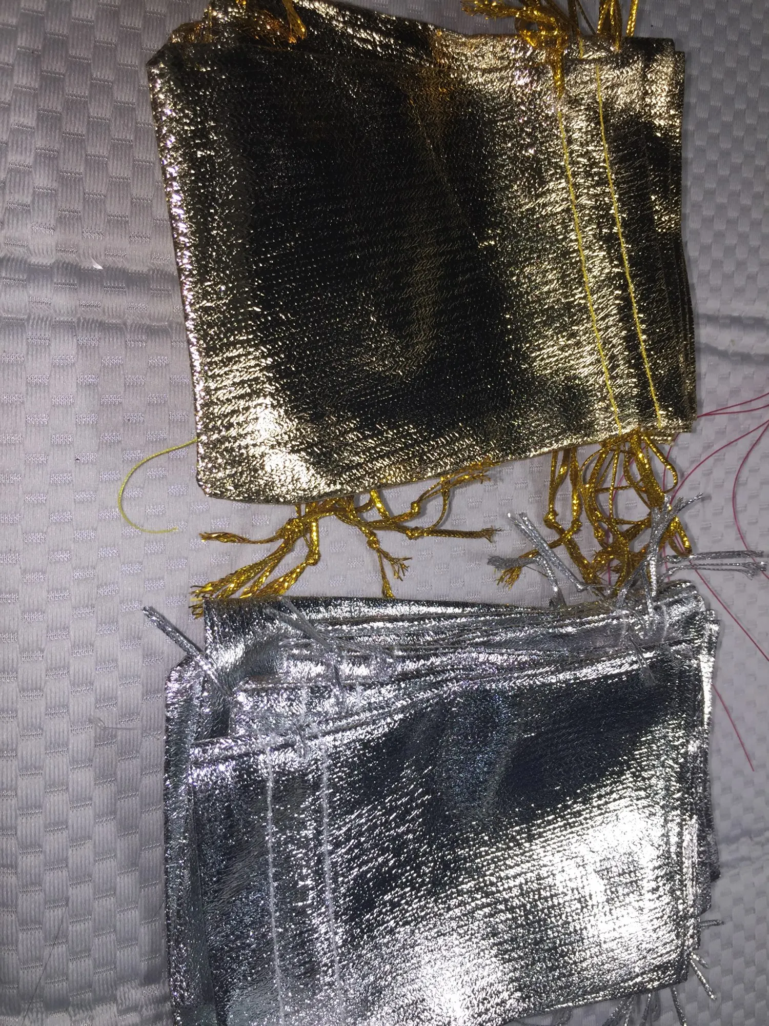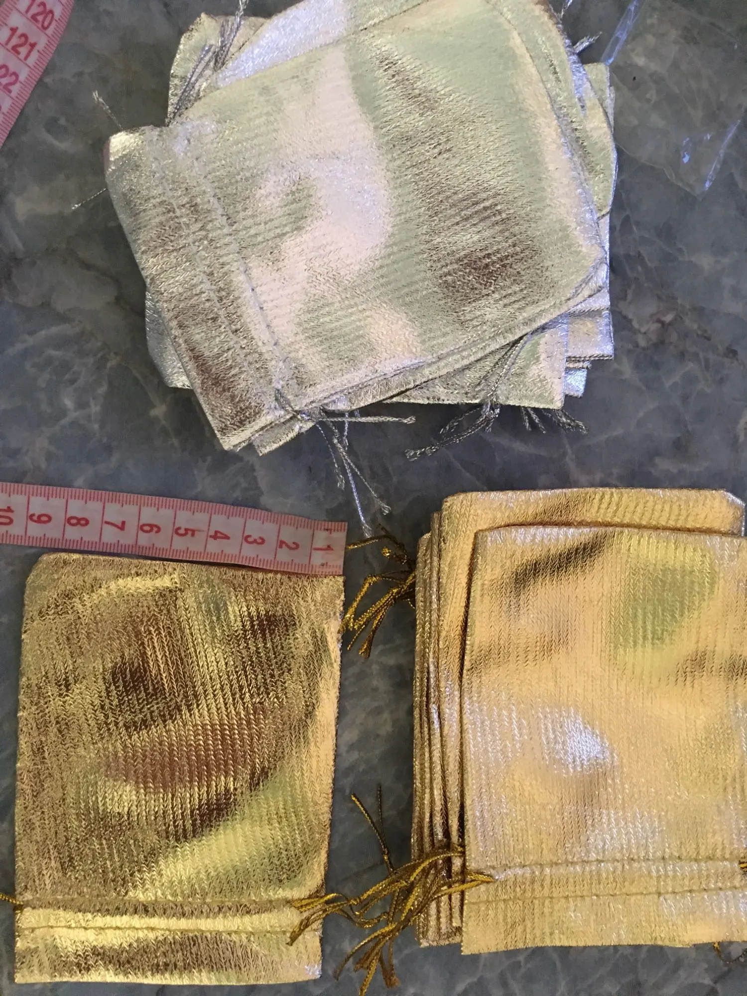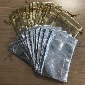 25 шт.лот упаковка ювелирных изделий Серебристая Золотая фольга ткань Шнурок Бархатный мешок 7x9 см 9x12 см 10x15 см свадебные подарочные пакеты и мешочки