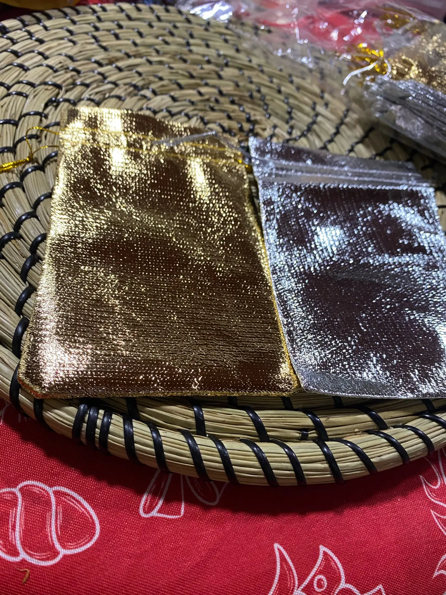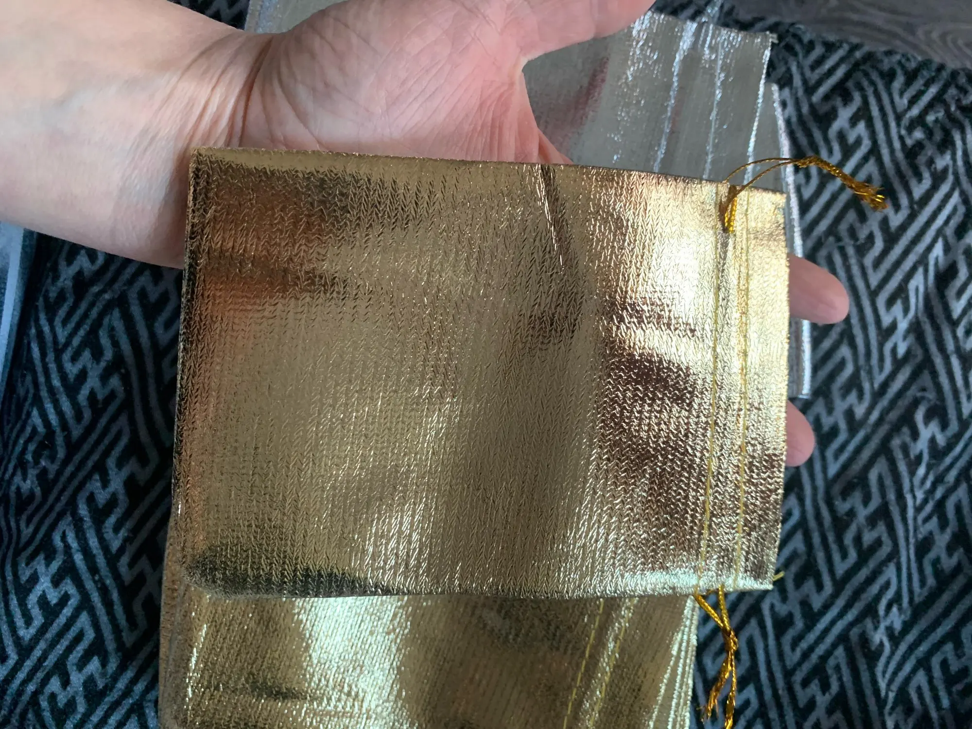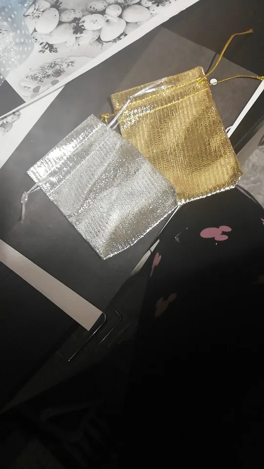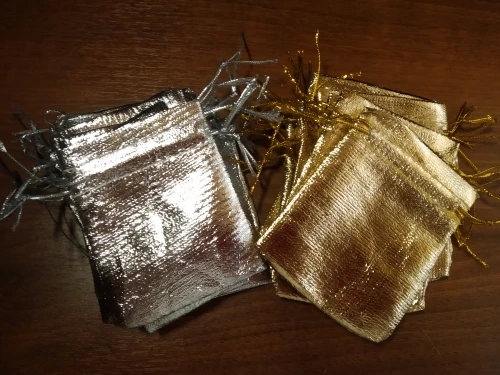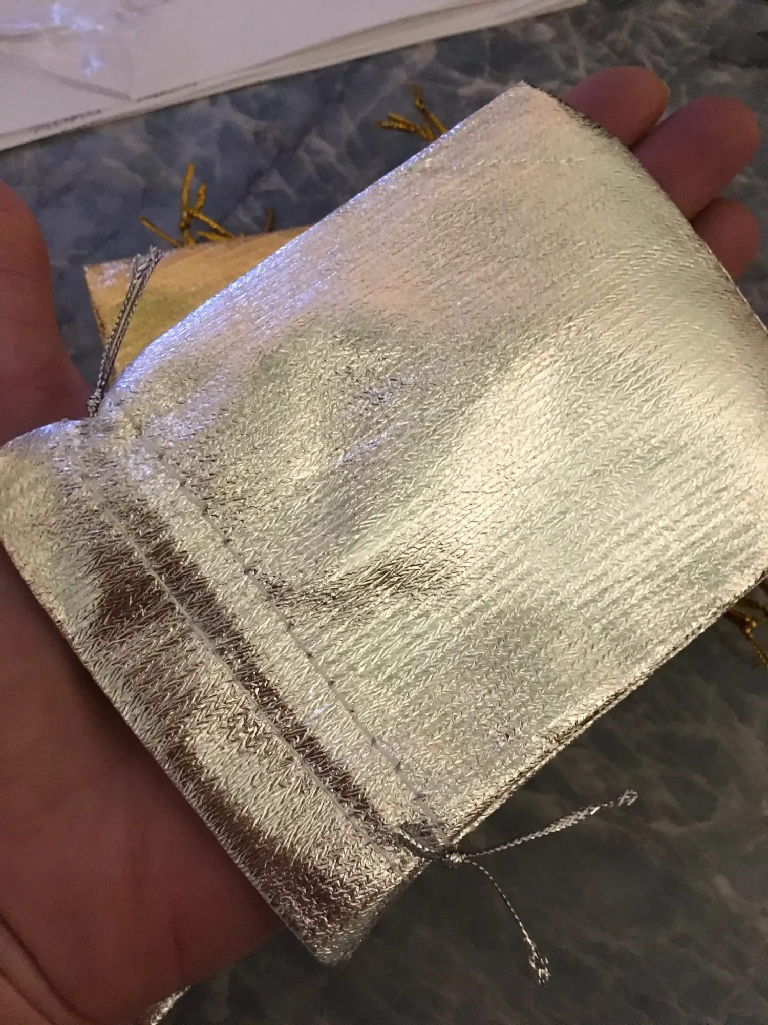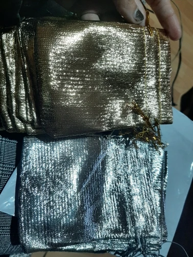 25 шт.лот упаковка ювелирных изделий Серебристая Золотая фольга ткань Шнурок Бархатный мешок 7x9 см 9x12 см 10x15 см свадебные подарочные пакеты и мешочки