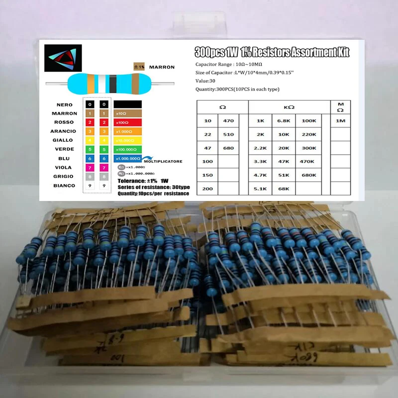 300 шт. 1% 1 Вт 10R 1M Ом 30 значений * 10 шт. металлическая пленка
