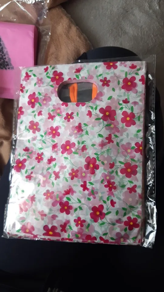 15x20 см, 100 шт.лот, с большими красными цветами печати Пластик хозяйственные сумки с ручкой, нижнее белье, Пластик подарочные пакеты для упаковки ювелирных изделий, сумки