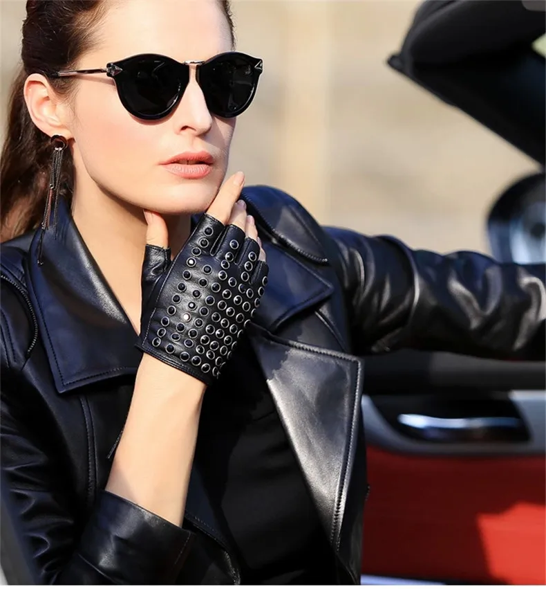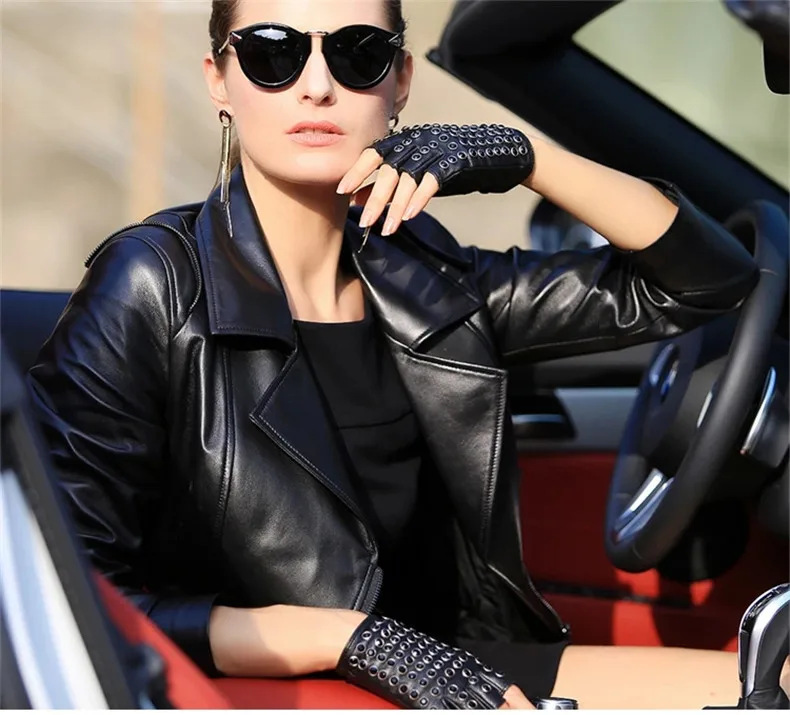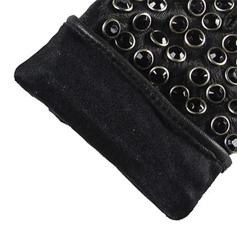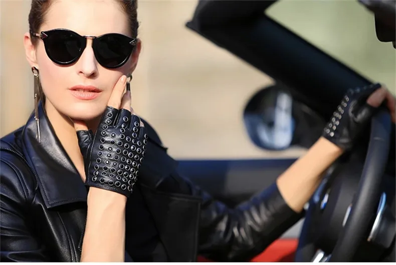 Женские перчатки из натуральной кожи на весну и лето, тонкие перчатки из овчины без пальцев для вождения, стразы, женские перчатки L116NN