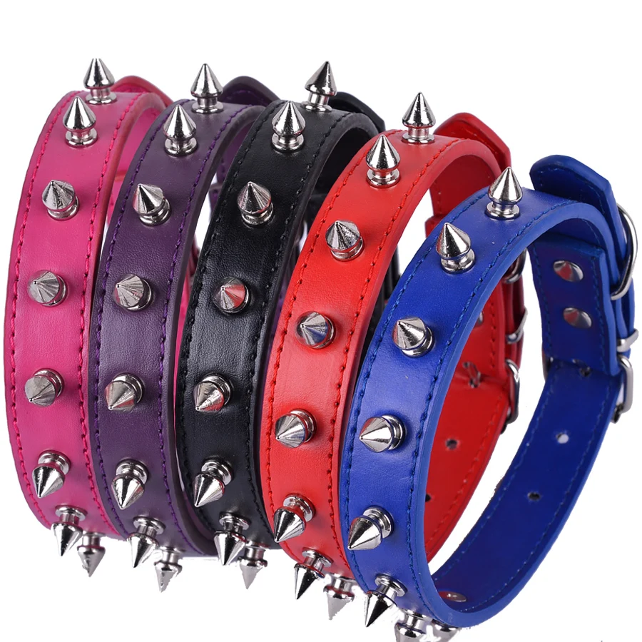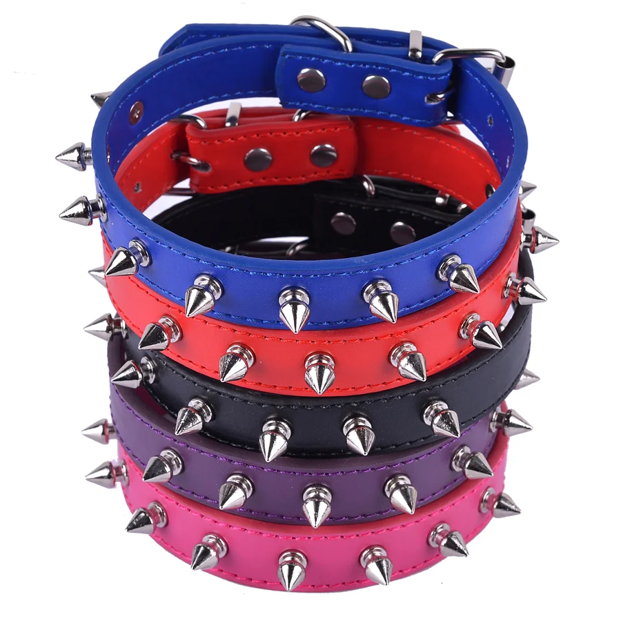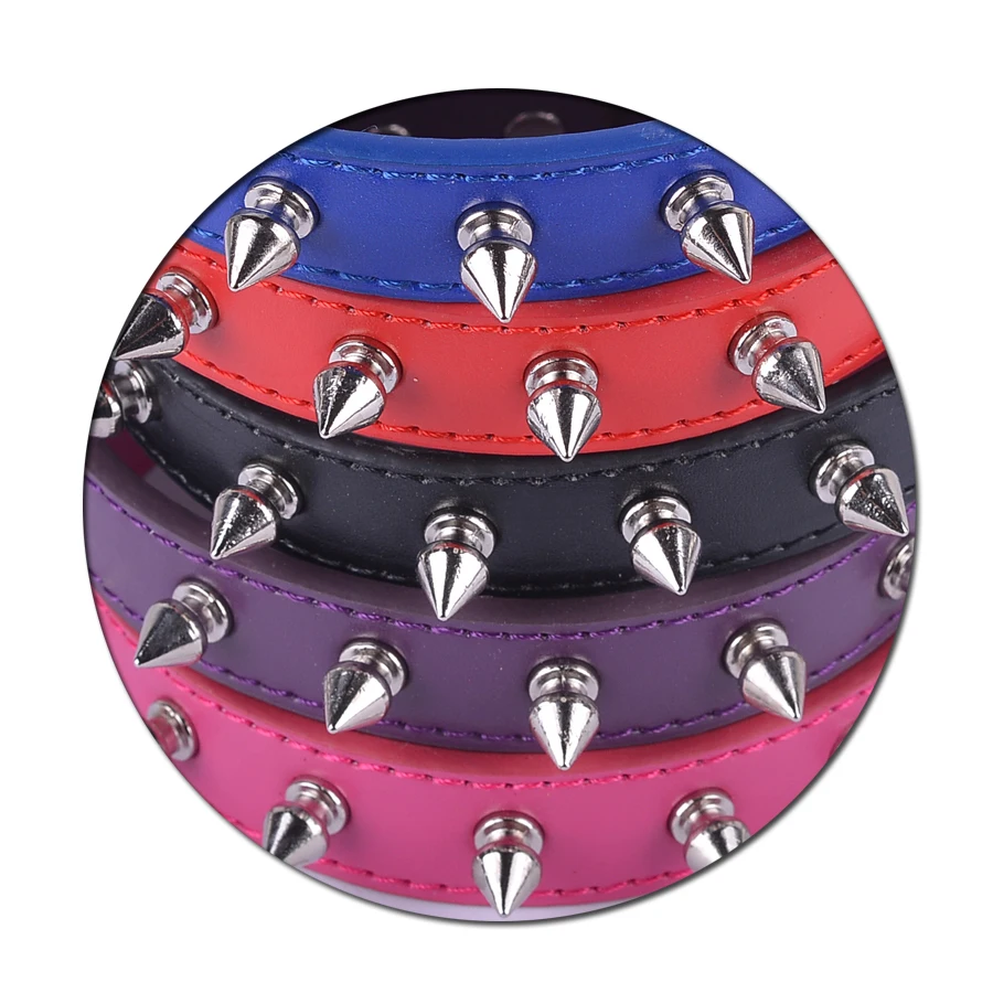 Ошейник для собак из ПУ кожи с шипами, ошейник для щенков, красный, черный, фиолетовый цвета, размеры S, M, L, опт