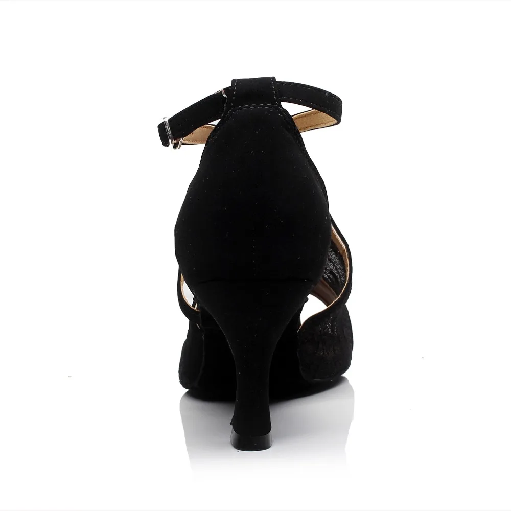 Женские бальные туфли для латиноамериканских танцев, черные сетчатые сандалии для сальсы, женская обувь для танго, чача, самбы, танцевальные туфли на высоком каблуке 7,58,510 см, 1637