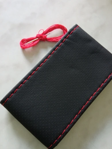 все как написано. уже приделал на руль. материал под кожу, не гладка - хват защет этого лучше. в комплекте не было иглы. а так нити хватило с запасом. чехол для руля киа венга в акурат подходит