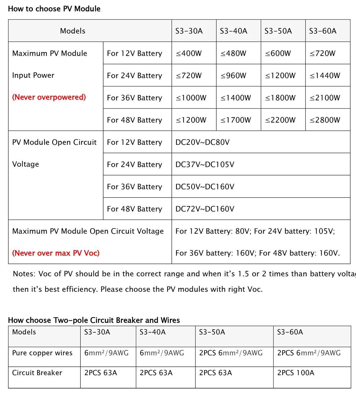 Max Solar Panel Input1700W for 48V battery system (Depends battery)
