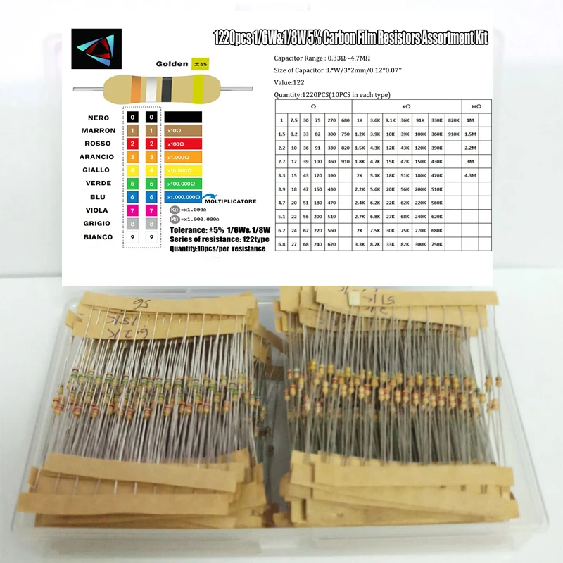 18 Вт 1220 ценностей X 10 шт. = 4,7 шт. 5% R м карбоновый пленочный резистор в коробке