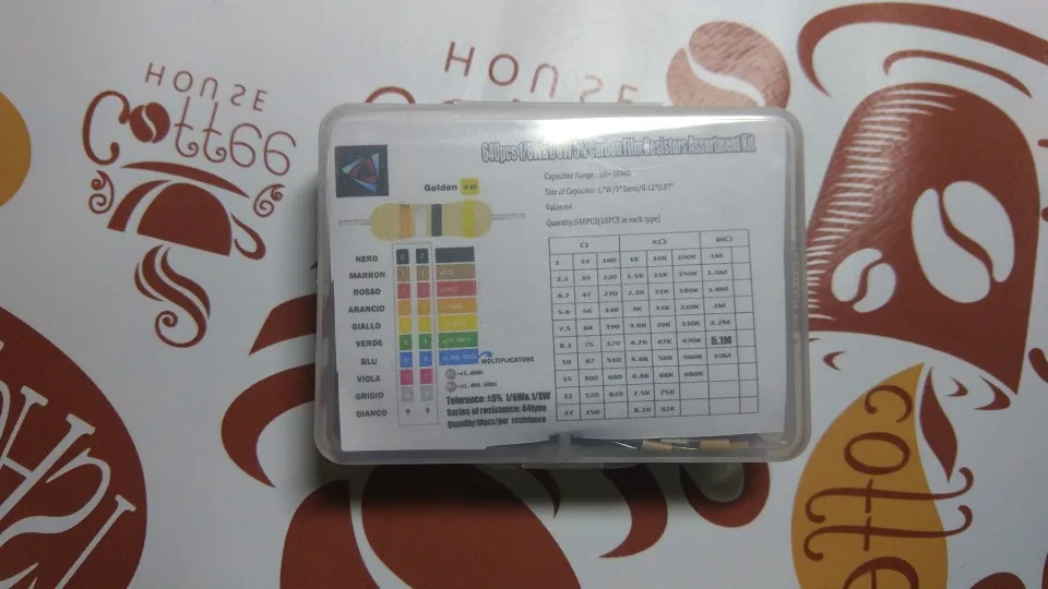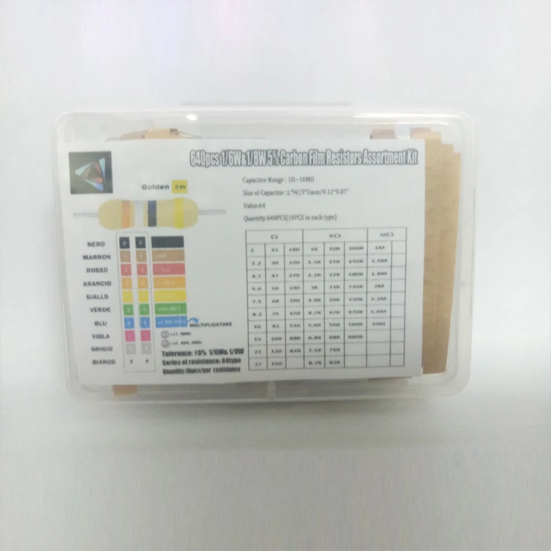 16W 5% 640pcs 64 значения 1R - 10MR Carbon Film комплект резисторов в ассортименте Set