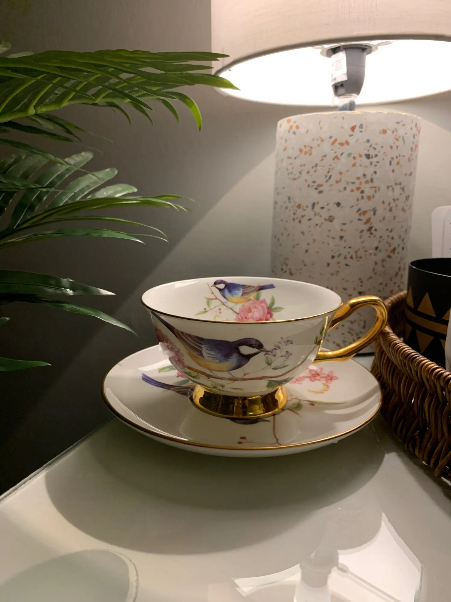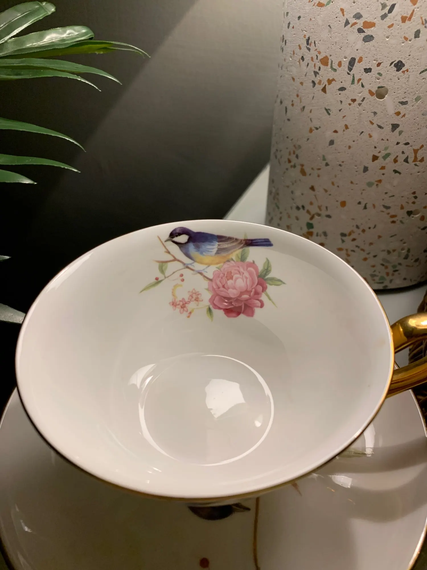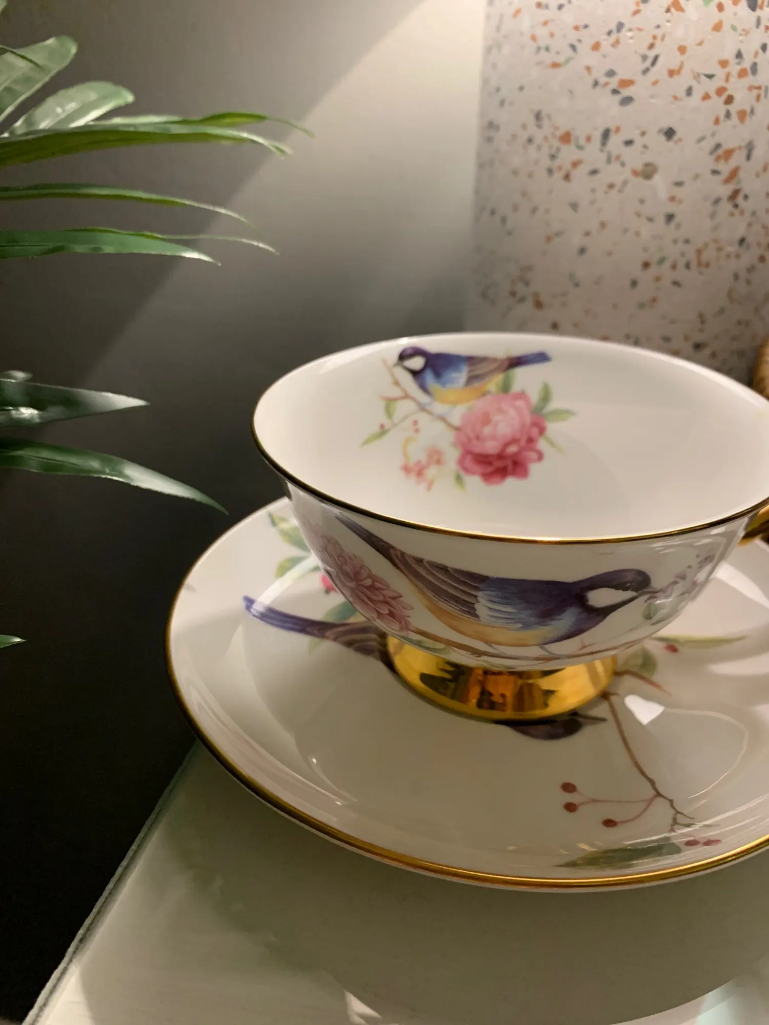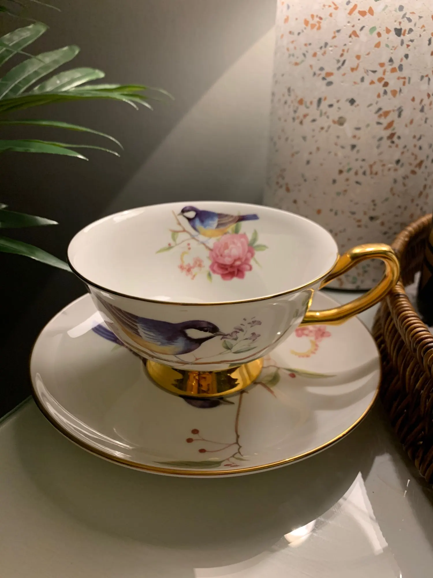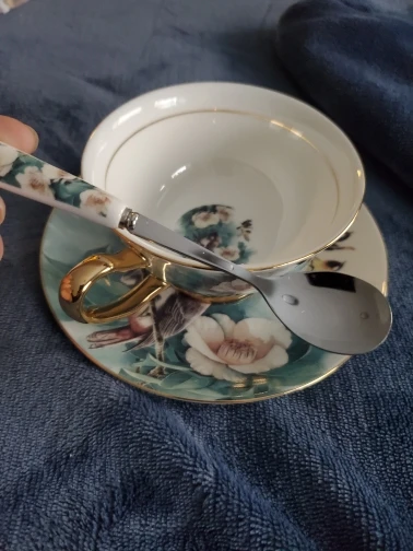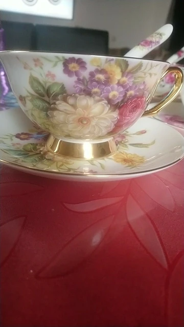 Это красиво. Это был подарок для моей матери, и ей это нравится. Тонкая кость Китая, просто великолепная чашка.