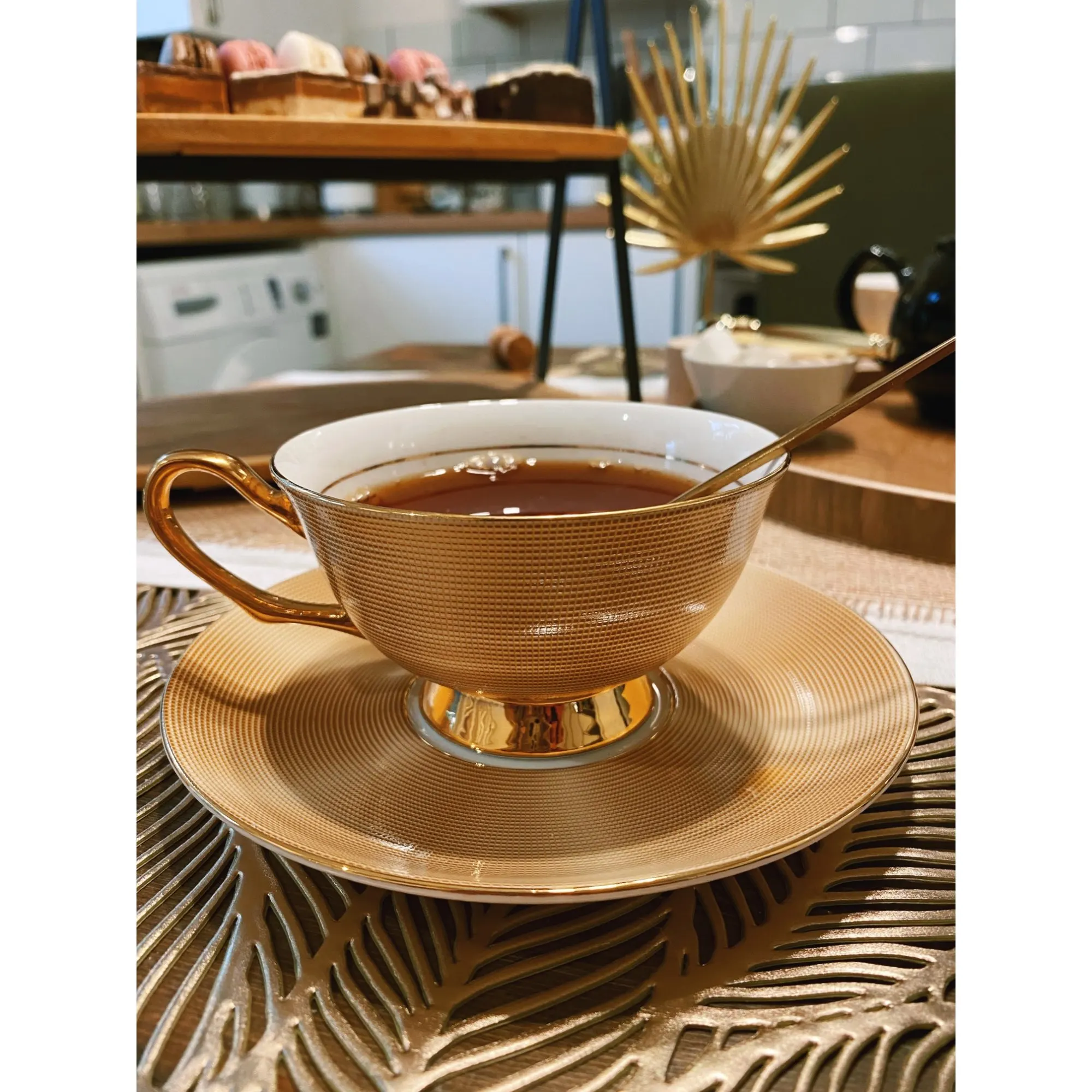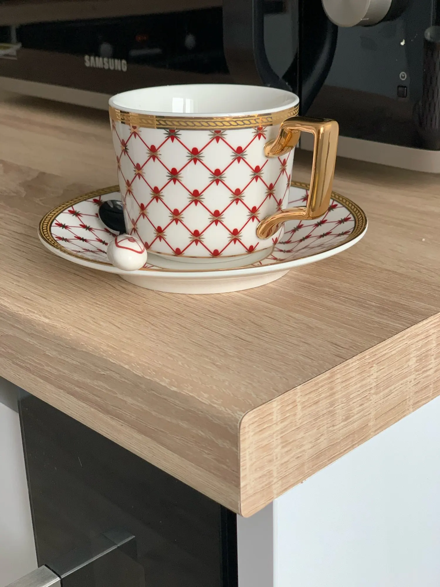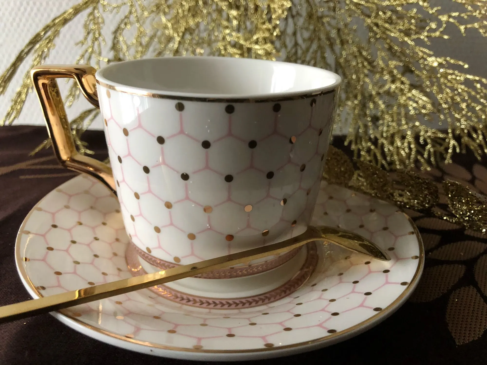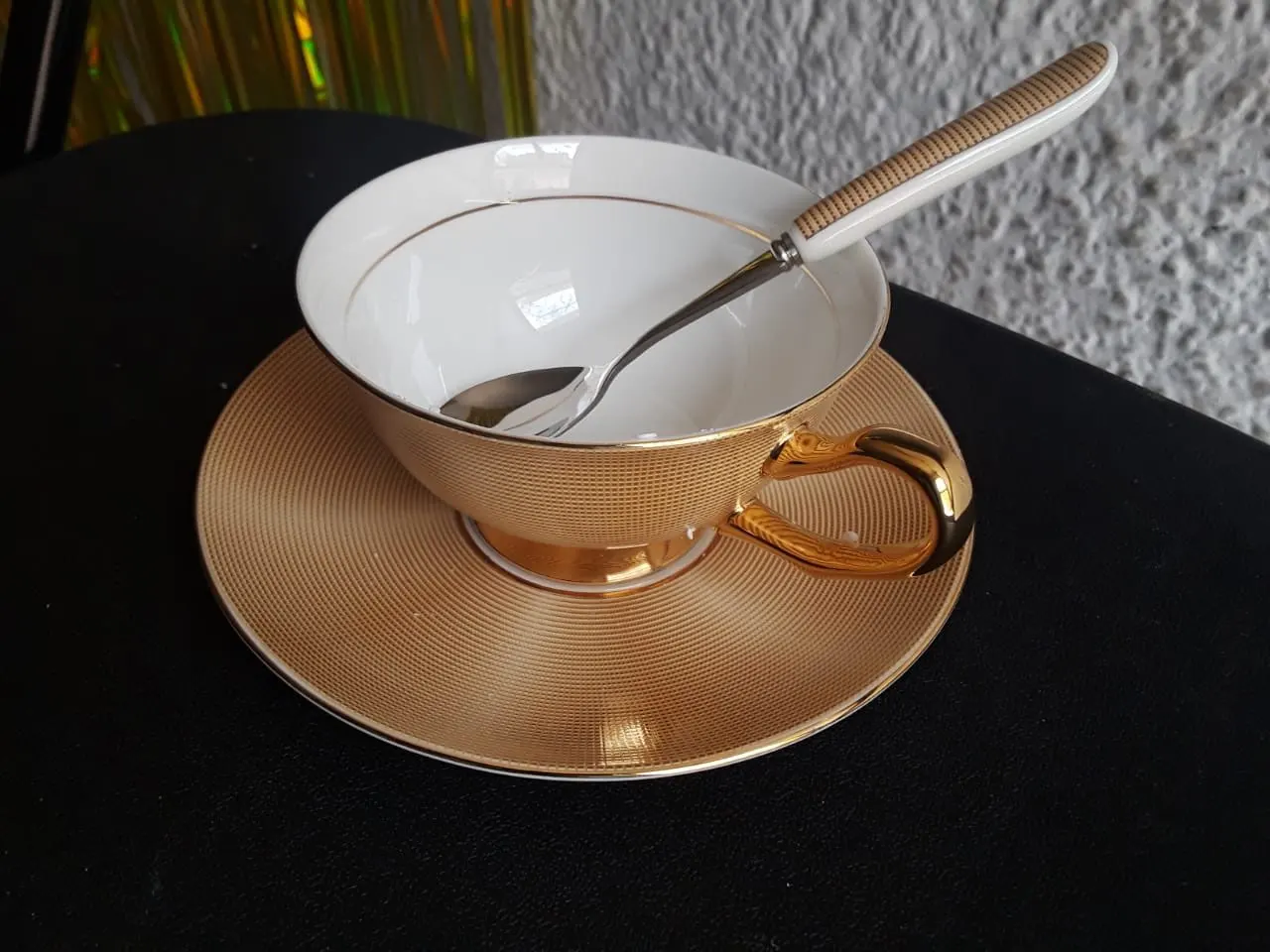 Очень красивый набор (чашка, блюдце и ложечка) смотрится дорого. Отличный вариант для подарка. Быстрая доставка, упакован хорошо.