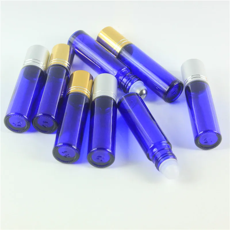 DHL Бесплатная доставка 122 шт.лот 10 мл портативные бутылки для духов из голубого стекла стеклянные бутылки Rollon с ароматом пустые бутылки для эфирного масла