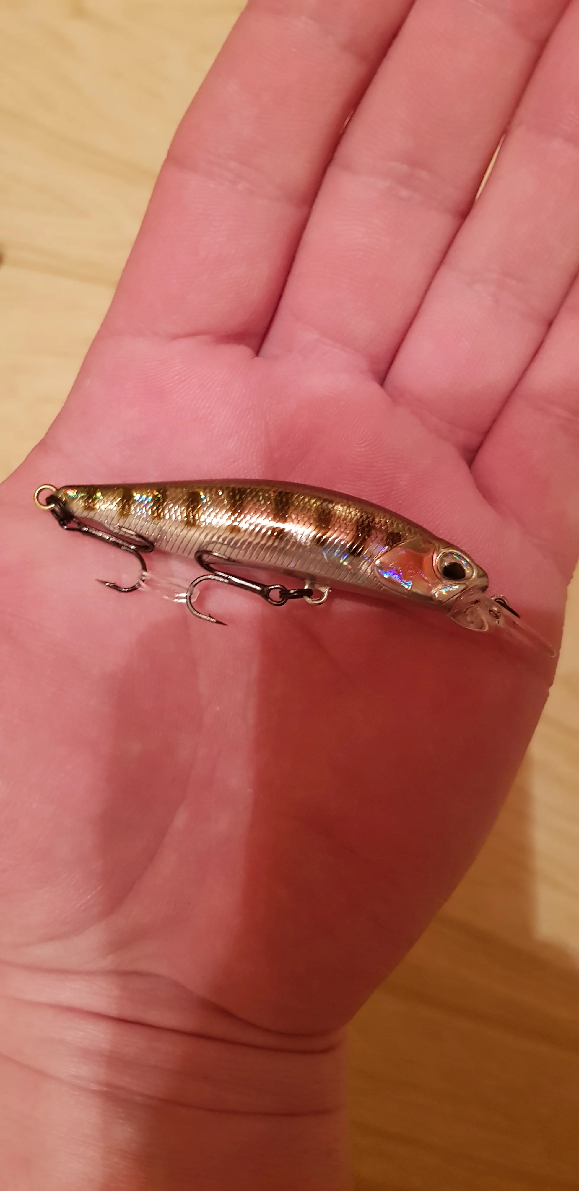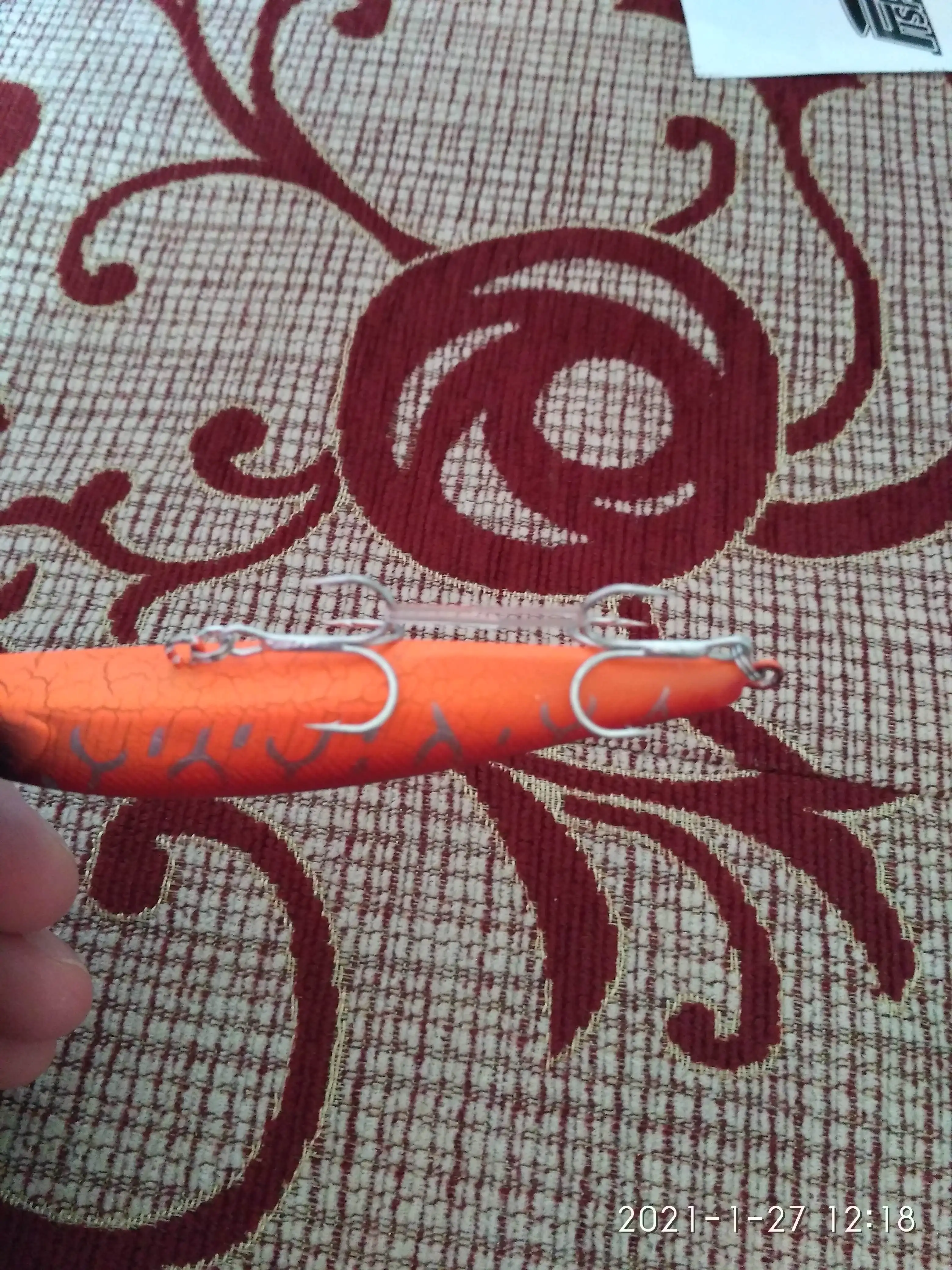 Доставка две недели в Нижегородскую область, воблер качественный, немного поцарапана краска, но думаю не критично, посмотрим на воде, потом дополню отзыв. Крючки острые, но почему-то светлые, до этого у них заказывал были тёмные. Магазин рекомендую, в подарок положили наклейку.