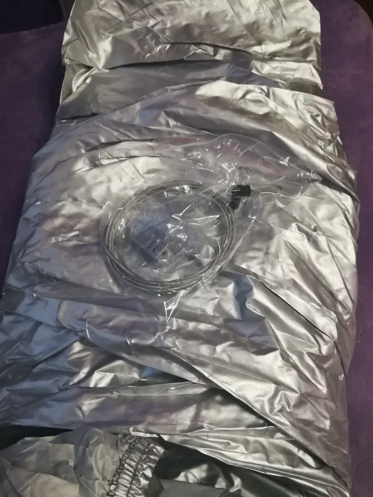 Доставка 4дня, принес курьер на дом. Чехол водонепроницаемый, внутри белый, а не фиолетовый, ткань очень тонкая, упакован в маленький мешок, а не в сумку как на видео. Не уверена, что его возможно будет засунуть обратно, после того как развернешь. С видео роликом не совподает поэтому четыре звезды. На машину еще не одевали.