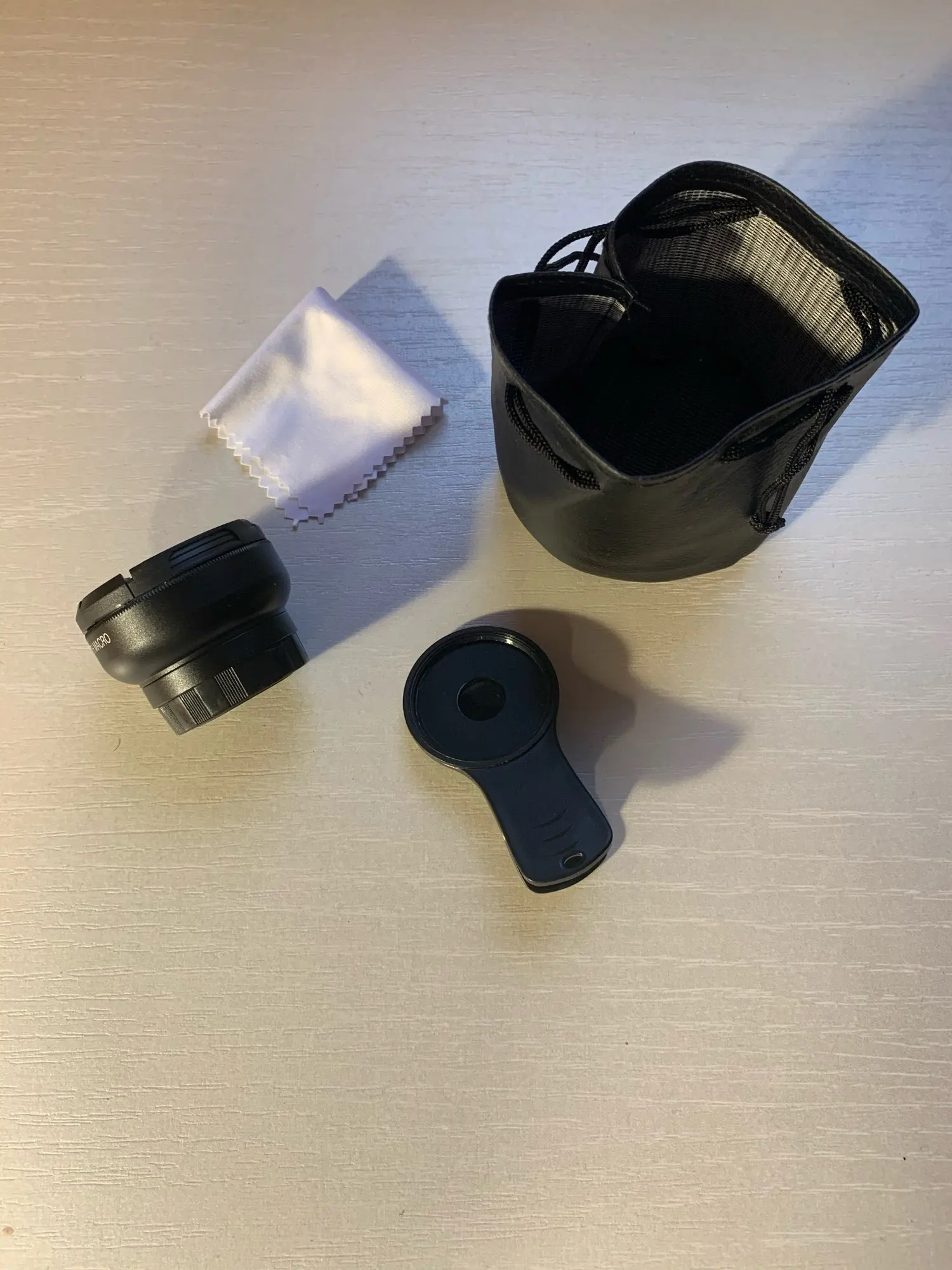 Хороший объектив, корпус металл. Есть чехол для хранения. На iphone xr Подошел отлично. Видимые края в широкоформатной линзе исправляются изменением размера фото 16:9 или 1:1. Доставка в РФ 12 дней.