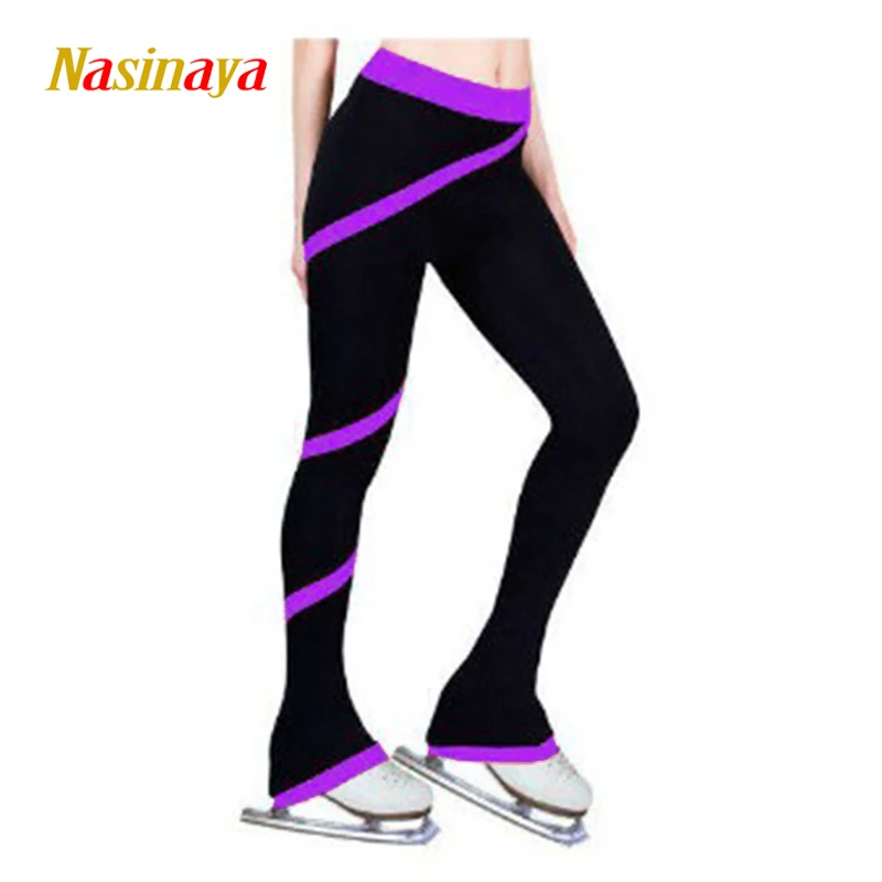 Длинные штаны для фигурного катания по индивидуальному заказу, штаны для фигурного катания на коньках, флисовая ткань, детская одежда для девочек фиолетового и розового цвета