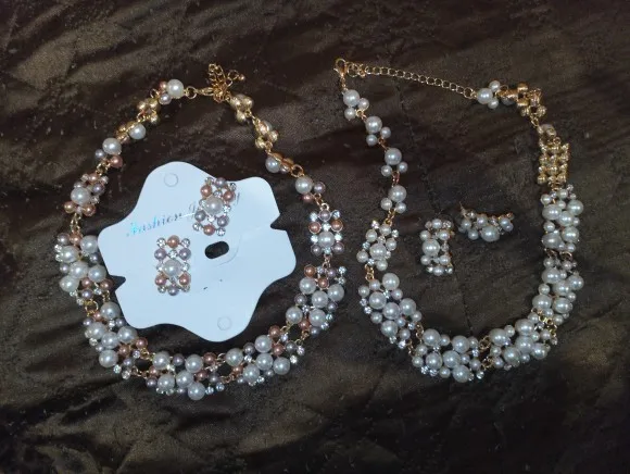 Набор красивый. Качество хорошее. Но до меня дошло сломанное колье и отвалившаяся подвеска с сережки. Серьгу собрали, а колье не возможно починить. Оплату али по спору вернул
