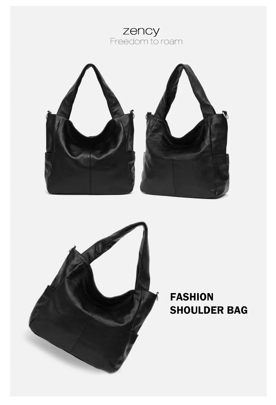 Zency 100% натуральная кожа элегантная женская сумка через плечо классическая черная сумка-тоут Hobos Повседневная сумка для покупок женская сумка через плечо кофейная