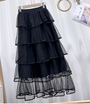 Новое поступление 2022, черные Потрясающие модные Романтические уличные Многослойные Длинные юбки