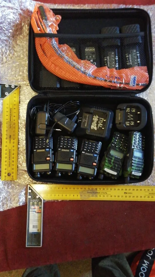 Всем здрассссь! Пришло вместе с кейсом много пупырки, с возложенной задачей кейс справился. Влезает 3 Baofeng 5r и 2 Baofeng 82, две зарядки тип "стакан", 5 акб повышенной ёмкости, плюс 5 усиленных антенн с небольшим трудом, но влазит. Внутри ещё поролон нарезанный всякими фигурами. Молнии и замки работают исправно, ткань что-то похожее на Codyra (или как она там правильно пишется) очень слабый запах пластика или резины, но я его заметил, только когда тщательно проверял. Так что кейс огонь, Продавцу счастья, советую