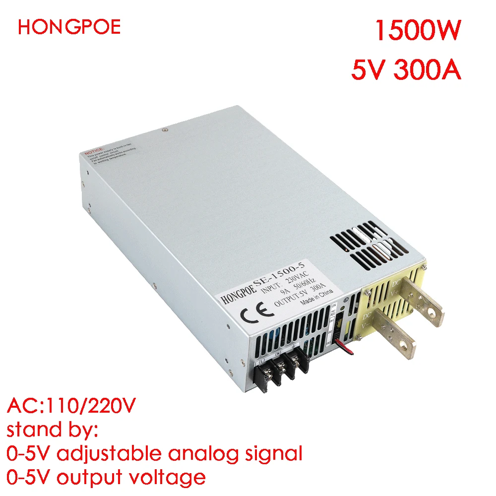 Источник питания 1500 Вт, 5 В, драйвер 5 В для светодиодной ленты, контроль аналогового сигнала 0-5 В переменного тока в постоянный, Регулируемый источник питания 0-5 В, 300 А, 5 в постоянного тока