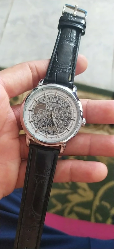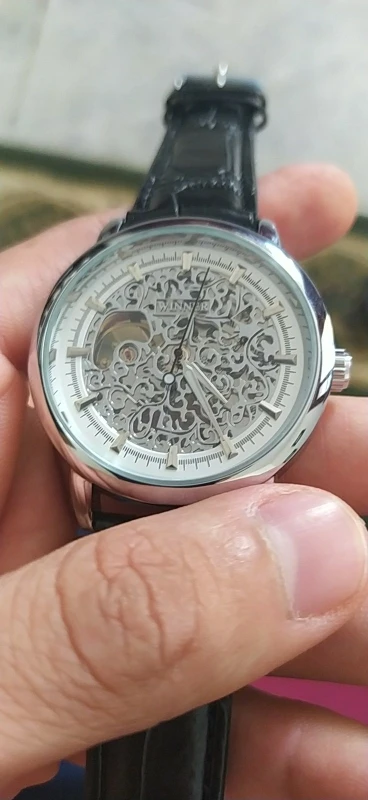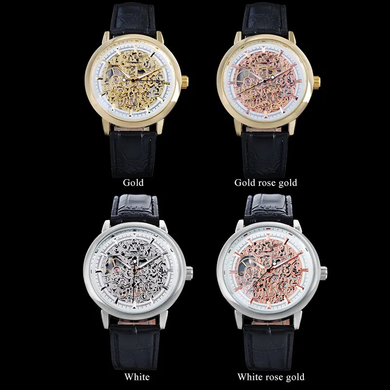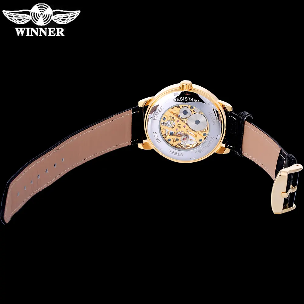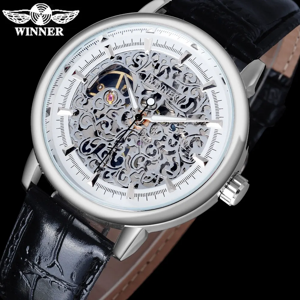 Часы наручные WINNER Мужские механические, люксовые брендовые модные спортивные с кожаным ремешком, серебристые