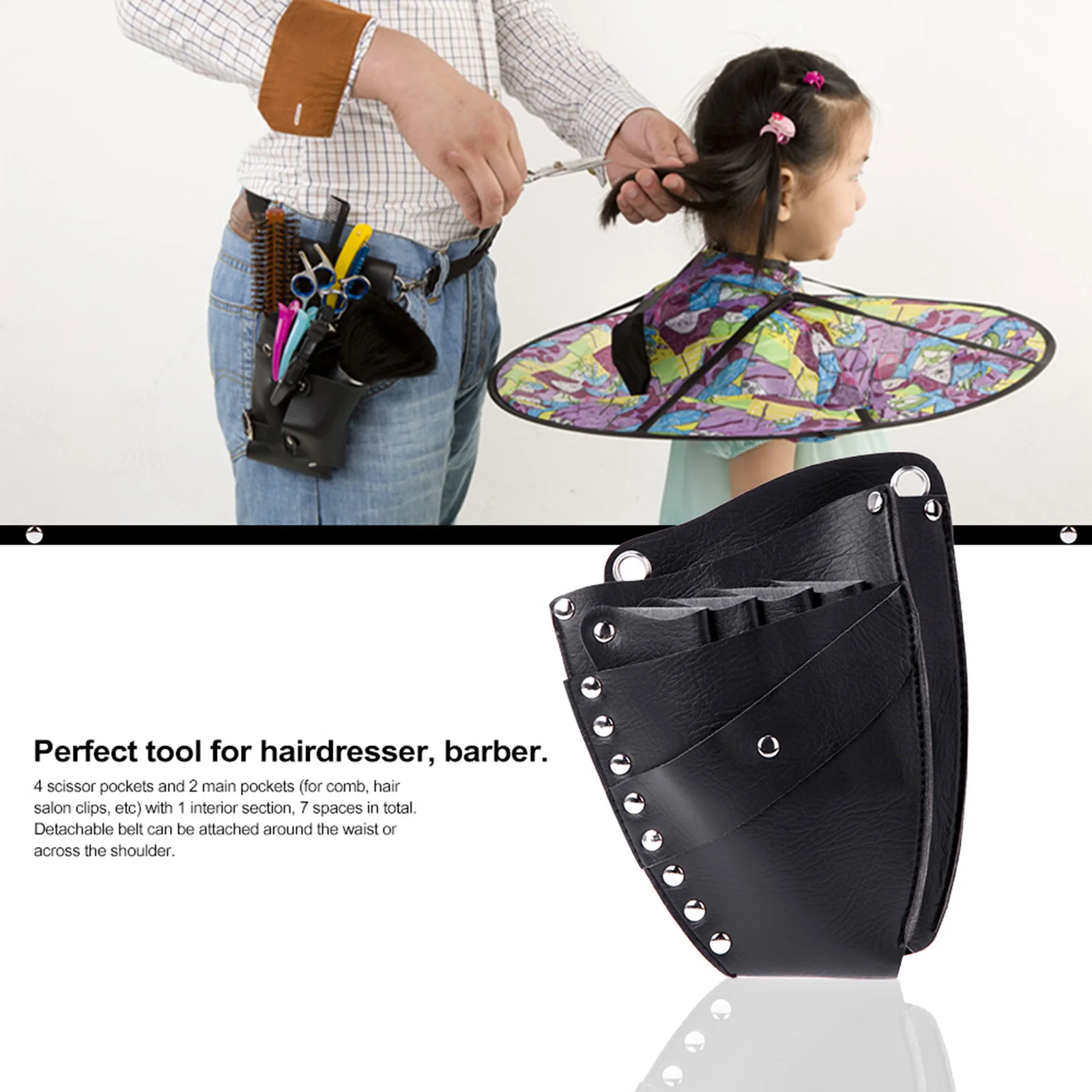 Сумка-кобура из искусственной кожи с заклепками для парикмахерских, парикмахерских и ножничных сумок, черный Чехол-держатель с поясом на ремне