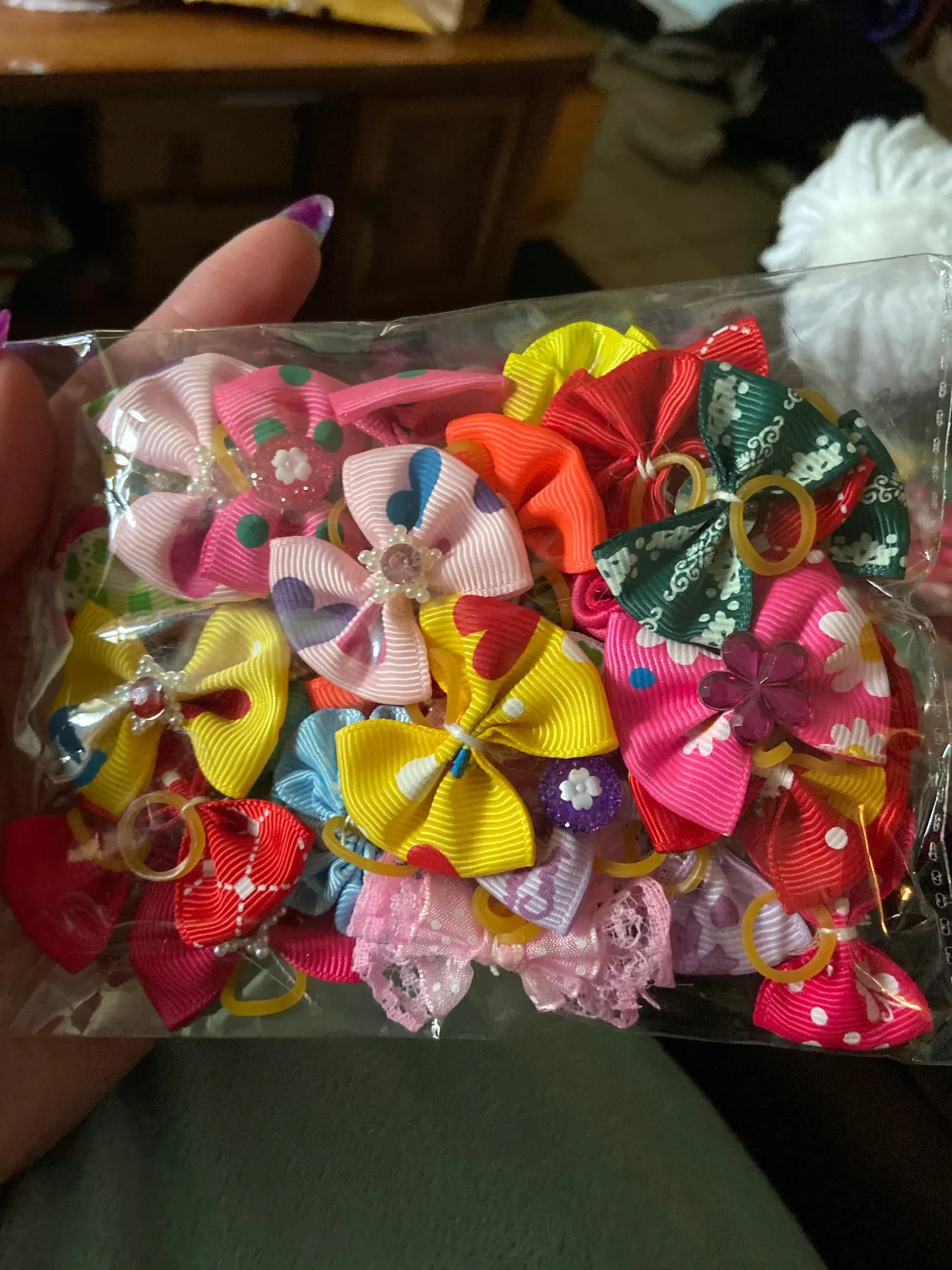 Очень быстро прибыл товар. Симпатичные бантики, пока не одевали
