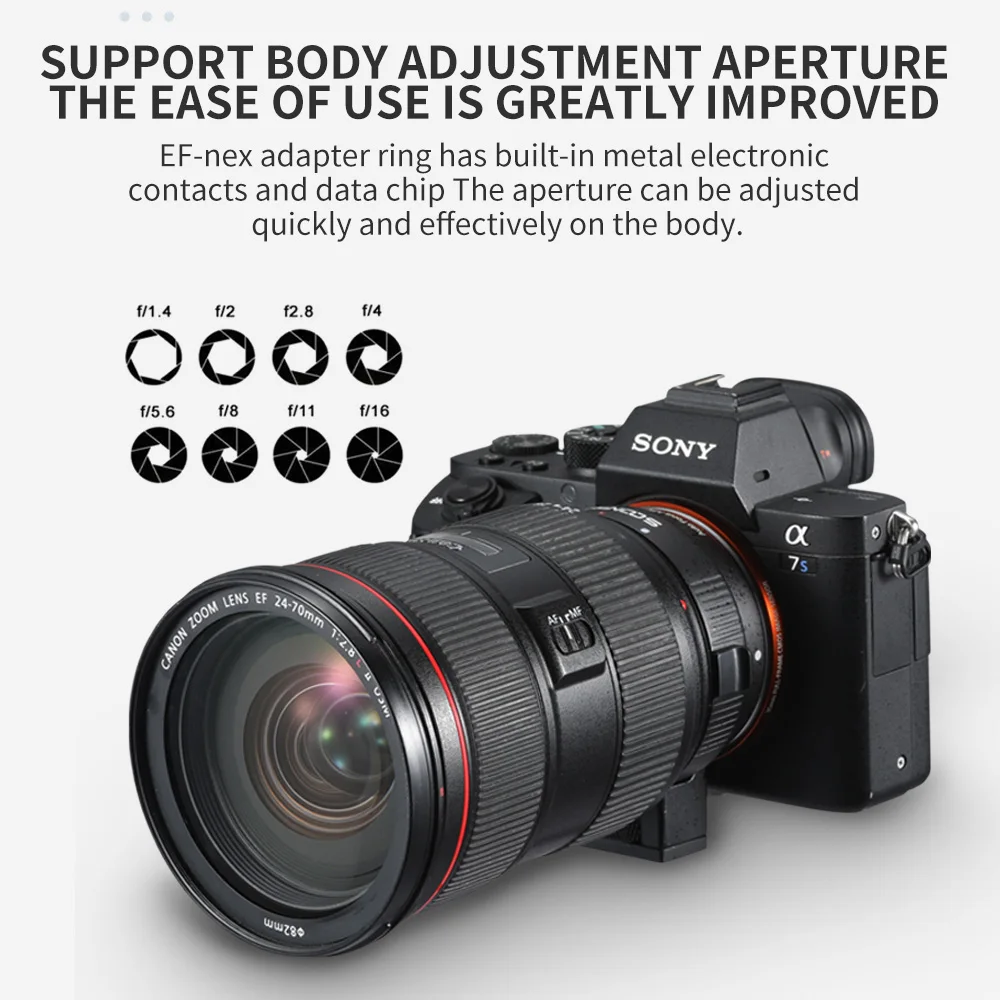 Адаптер крепления объектива SOONPHO EF-NEX для Sony Canon EF EF-S, E-Mount NEX A7 A7R A7s NEX-7 NEX-6 5, полнокадровый