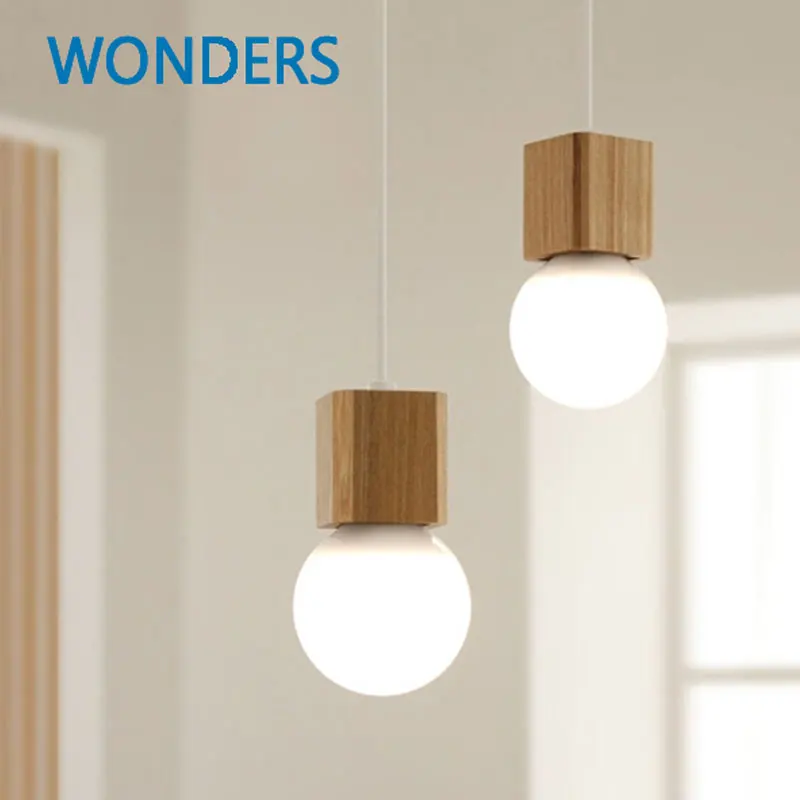 Винтажный подвесной светильник из дуба в скандинавском стиле, люстра E27 для спальни, гостиной, столовой, подвесной светильник для бара, домашний декор