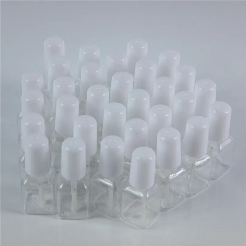 10 шт.партия 5g Мини милый прозрачный пластиковый пустой квадратный полированный флакон для ногтей с белой крышкой кисточкой пластиковый флакон для ногтей для детей