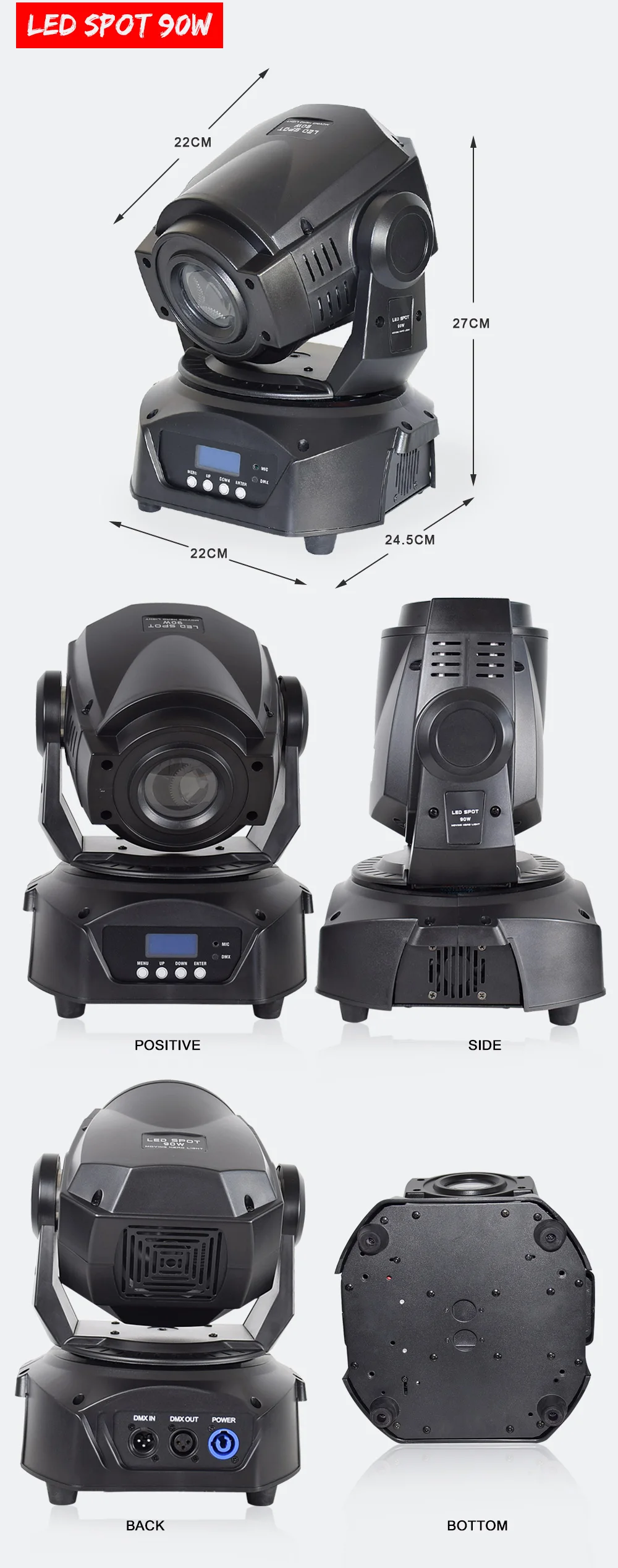 • Светодиодный прожектор с высокой выходной подвижной головкой• 1x светодиодный 90 Вт• Угол луча 13 градусов• Моторизованный фокус• 3 режима работы: звук активный,Режим показа и управление DMX• 4 встроенных освещения• 16 каналов DMX• 7 цветов + белый с половиной цвета + пятен• 1 вращающееся колесо gobo: 6 вращающихся gobos + 1 стеклянный gobo с прыжком и вращением• 1 статическое колесо gobo: 8 gobos + белый с эффектом скачка• Электронное Затемнение: 0% - 100%• 5 кривых диммера• Обратный режим панорамирования/наклона для контрастного движенияКогда приспособления соединены вместе• Быстрое движение наклона панорамирования• Панорама: 540 градусов; Наклон: 270 градусов• Эффект дрожания Gobo• 16-уровневая Fine Pan/Tilt контрольный• Пресс-форма-4-кнопка DMX светодиодный меню с 180 ° обратный режим просмотра• Шаговые двигатели с микрошаговым механизмом• Включает Омега кронштейн для крепления фермы• 3-контактный XLR Сделано в Китае внутрь или наружу• Охлаждение вентилятора• Эффект стробоскопа/импульса; Случайный стробоскоп медленного до быстрого• Светильник источник света: 1x90 Вт, холодный белый свет, светодиодный CT: 8500K• Длительный срок службы светодиодный (номинальная составляет примерно 50000 часов)• Многофункциональное напряжение: 100-240 В, 50 Гц/60 Гц• Потребляемая мощность: 140 Вт• Размеры (ДхШхВ): 230x230x340 мм• Вес: 9 кг.