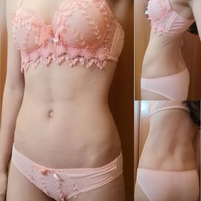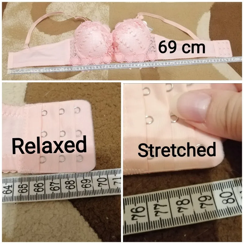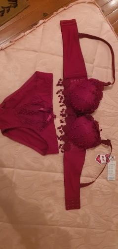 Отличный комплект! Мои размеры: обхват груди 83, обхват груди 76, обхват талии 66, ягодиц 91 см. Обычно я ношу 75A или 75B, зависит от. Бюстгальтер идеально подходит для каждого крючка, мне бы хотелось еще плотнее. Пуш-ап очень большой (с дополнительными подушечками), у меня есть маленькая грудь, и этот бюстгальтер имеет огромное отличие, я чувствую себя сексуальным, я не увидел свою грудь таким образом. Но под одеждой Выглядит необычно, большой, я буду носить это только для вечернего свидания. Длина бюстгальтера-69 см, растягивается до 80 см. Трусики в ширину 29 см и максимум 38 см. Трусики не обтягивающие и не выпадают, но низкая талия 19 см. Цвет выцветает при стирке, поэтому Стирайте его отдельно. Я очень доволен, очень соблазнительный вид, другие цвета могут быть даже больше. Посылка была полностью отслежена, и цена была отличной, у меня были купоны.