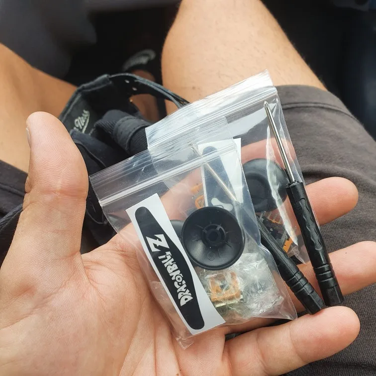 Всё пришло,всё отлично. Брал пару зелёного цвета для замены старого неисправного потенциометра на дуалшок4 2й версии, пока что до перепайки руки не дошли. Механизм аналогов не заедает-возвращаются на место,L3 R3 нажимаются четко и со щелчками, возможно добавлю чутка смазки в механизм аналога, но она там и так есть. Отдельное спасибо продавцу за наклейку на светодиодную панель.