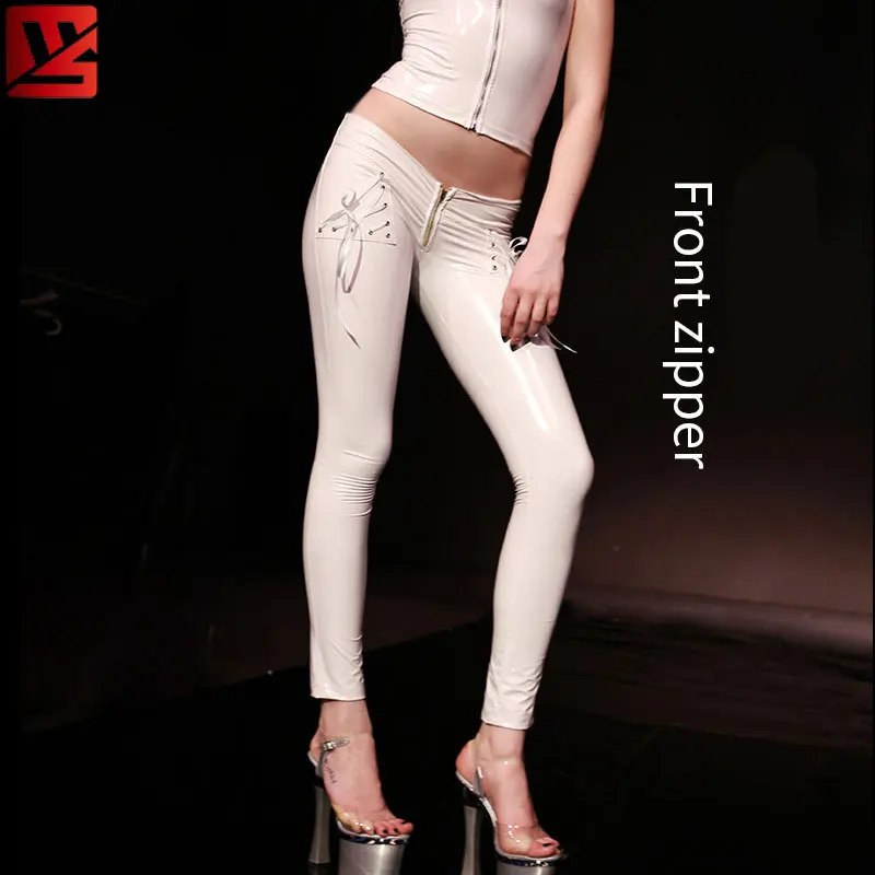 Сексуальные латексные узкие брюки из искусственной кожи, брюки с низкой талией, бандажные, на молнии, с шаговым швом, тонкие, модные, Клубные, танцевальные, черные, белые