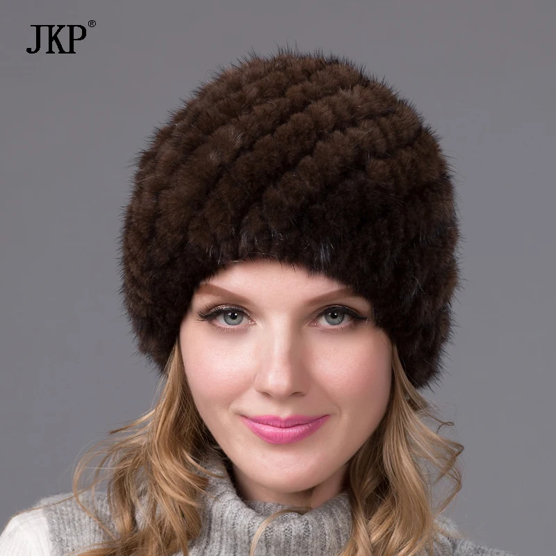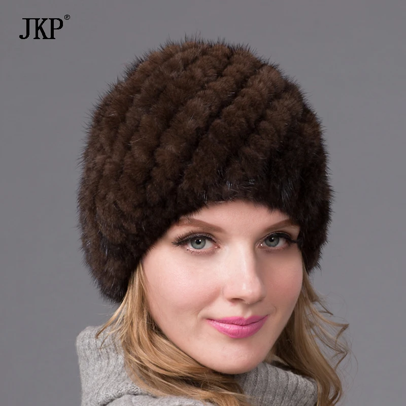 Женская шапка JKP из натуральной кожи, вязаная зимняя шапка из натурального меха норки icon star icon star icon star icon star icon star