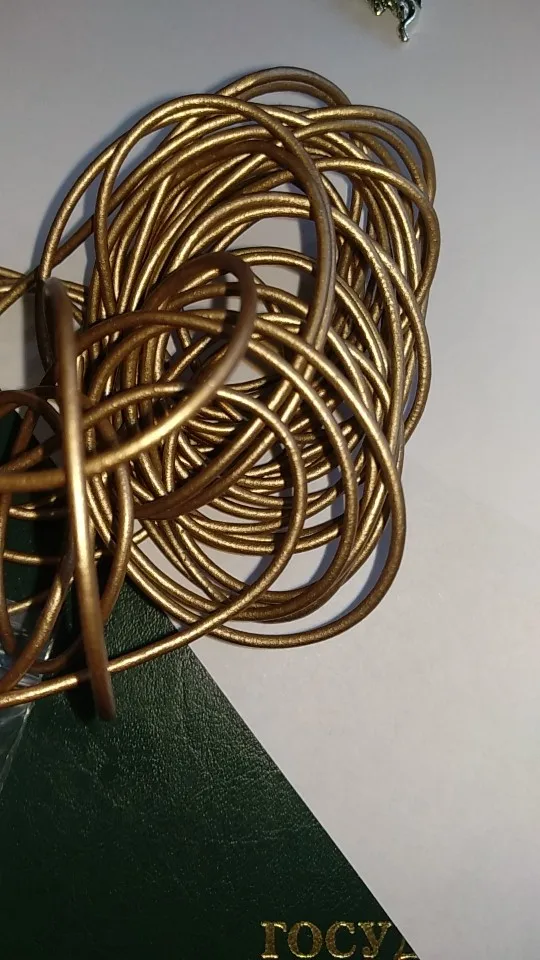 Шнур отличного качества и очень необычного цвета. Заказывала чёрный, но за счёт перламутрового напыления он имеет оттенок старинной бронзы (смесь бронзового, золотого и зелёного). Я сначала удивилась, но быстро пришла к выводу, что так даже лучше, уж очень необычно и красиво. Шнур мягкий и приятный на ощупь. Доставка быстрая , продавцу большое спасибо!