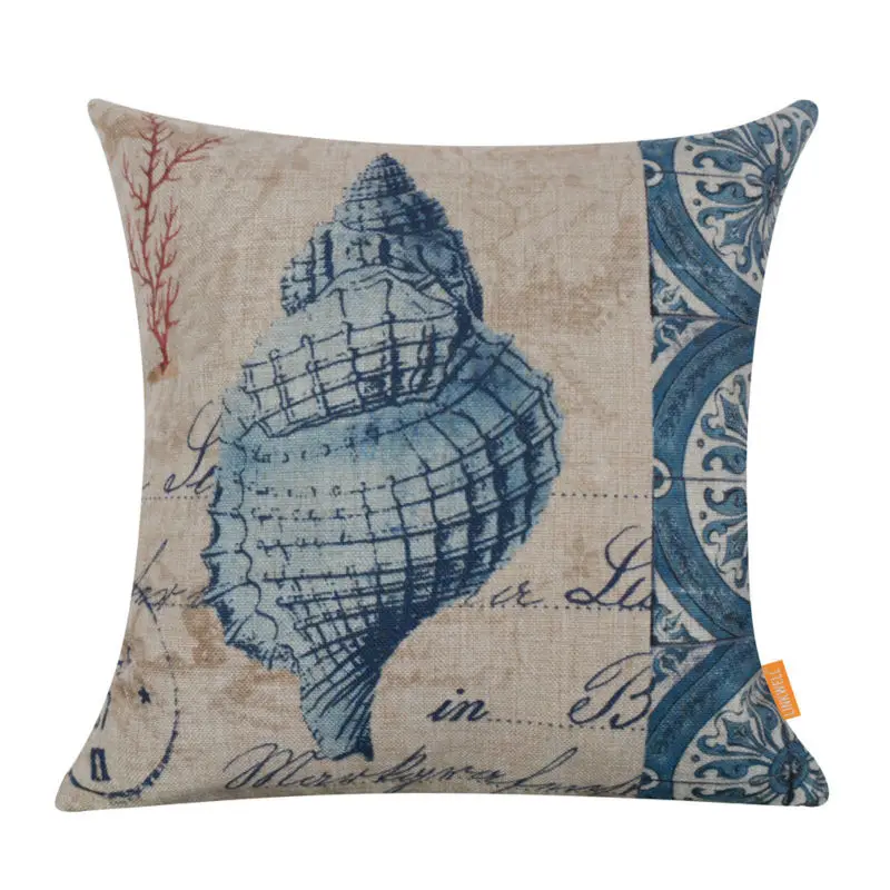 LINKWELL 18x18 "винтажный темно-синий раковины красного кораллового побережья океана Морской мешковины наволочка для подушки