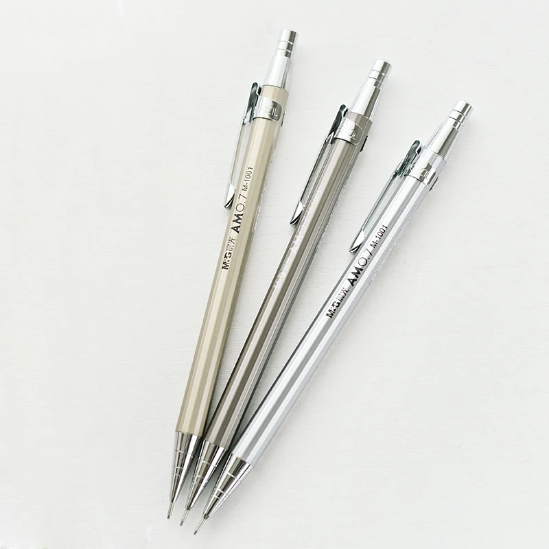 Автоматический механический карандаш M G M-1001, 3 шт., черныйсеребристыйсерый цвета, 0,5 мм, 0,7 мм, металлический корпус, офисные и школьные принадлежности для письма