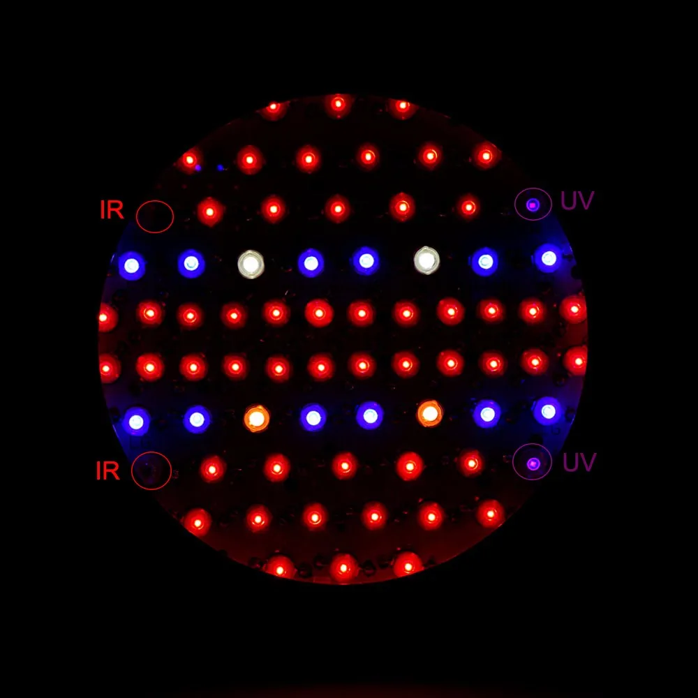 52red + 12 синий + 2 теплый белый + 2 белый + 2IR + 2UV