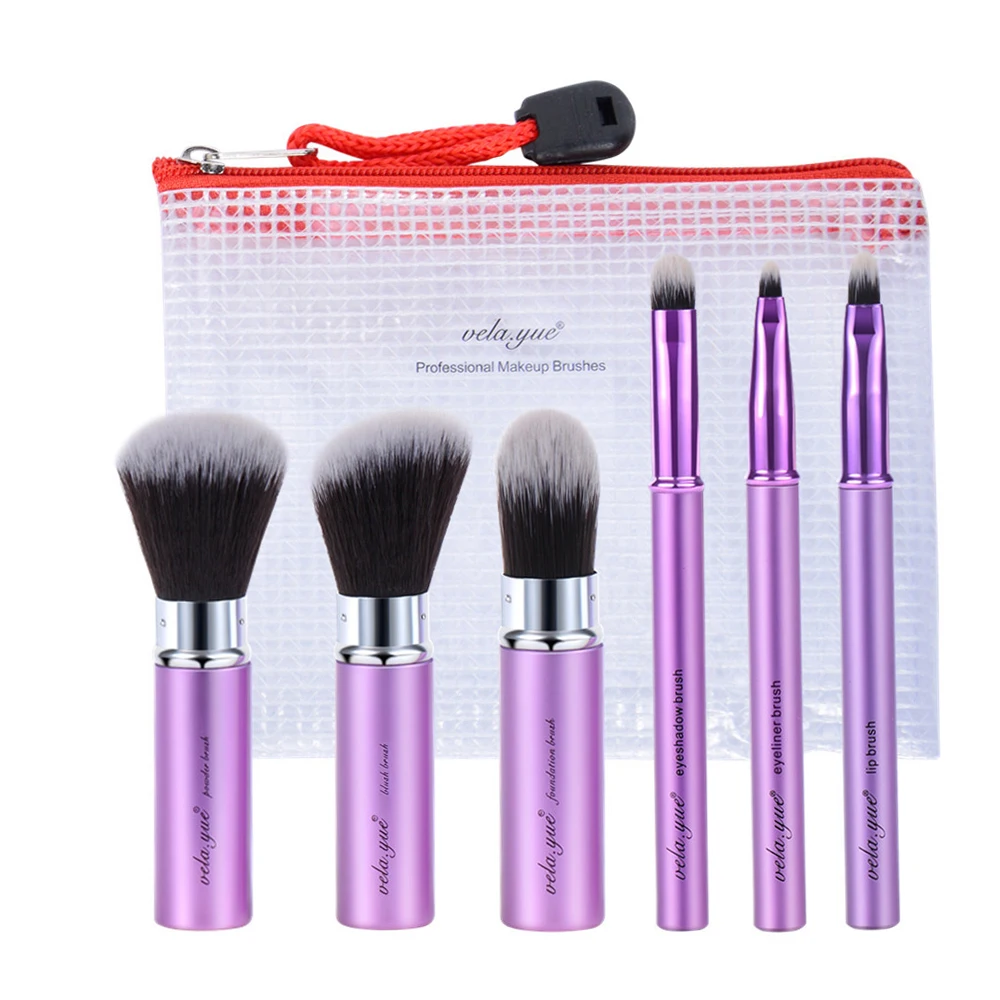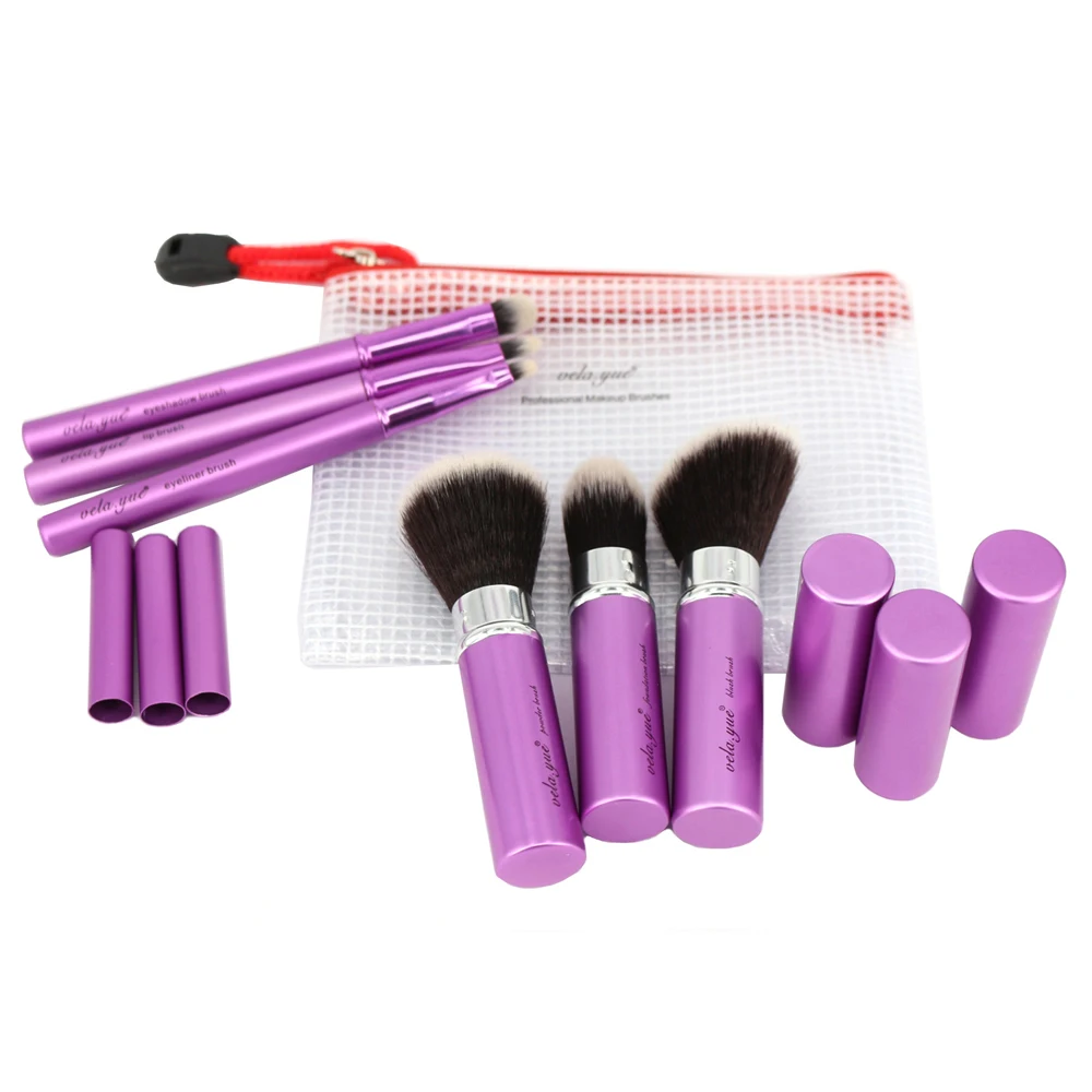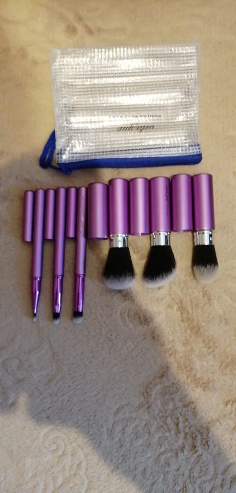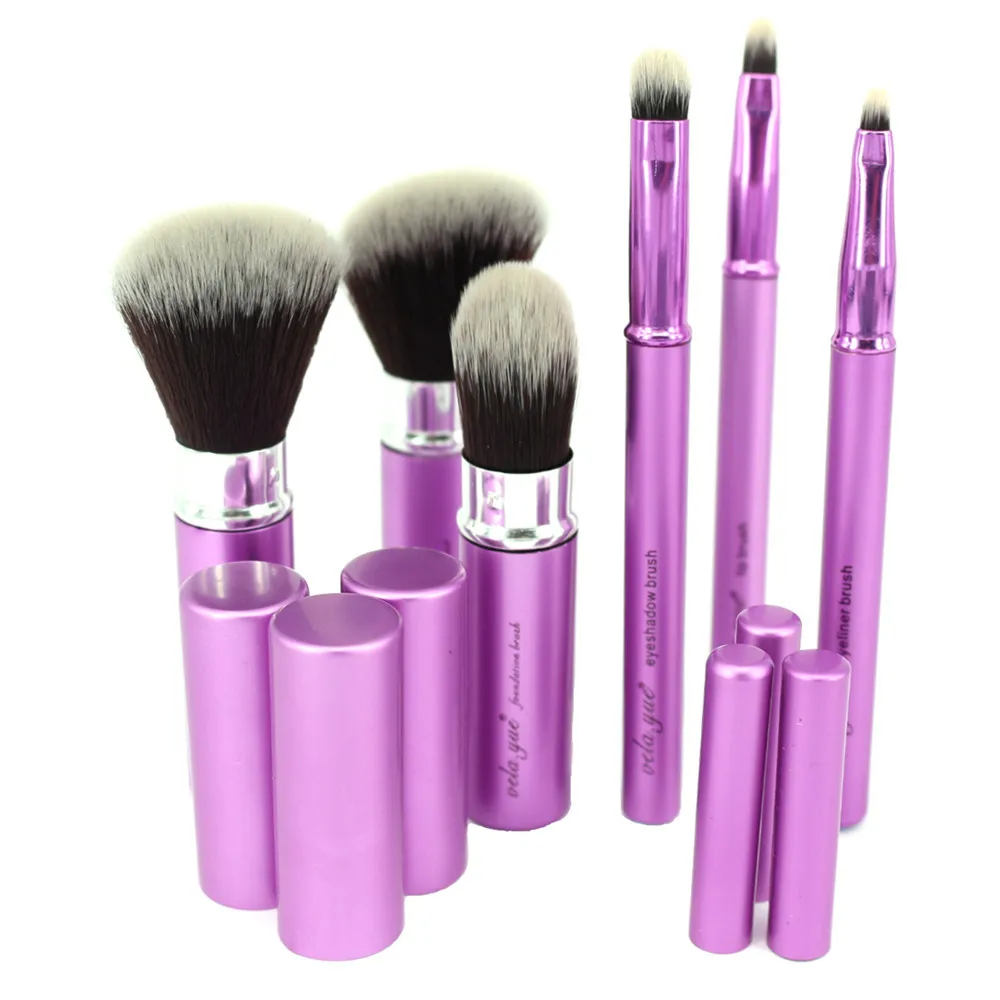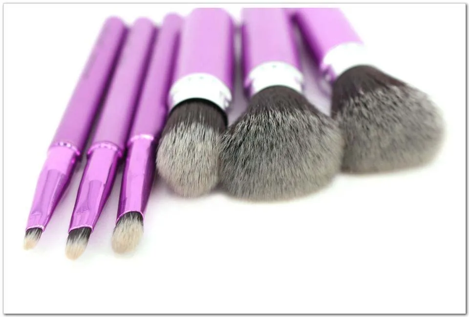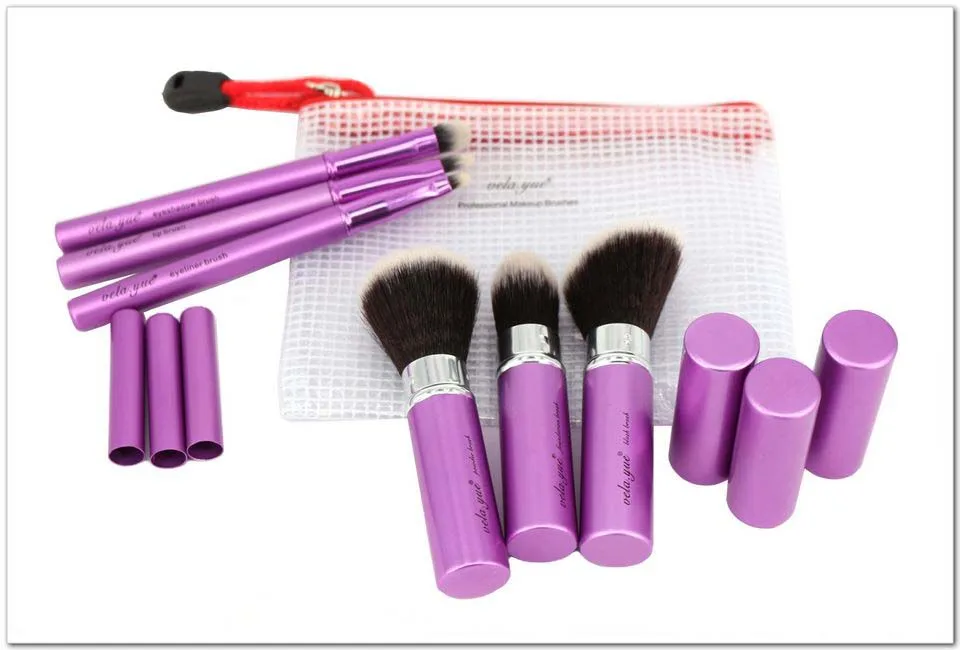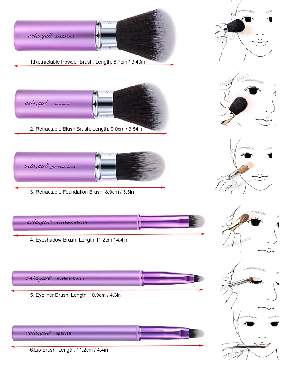 Кисть включает:(1 выдвижная кисть для пудры, 1 Выдвижная угловая кисть для румян, 1 выдвижная кисть для основы, 1 кисть для теней, 1 Гелевая Кисть для подводки глаз, 1 кисть для губ)