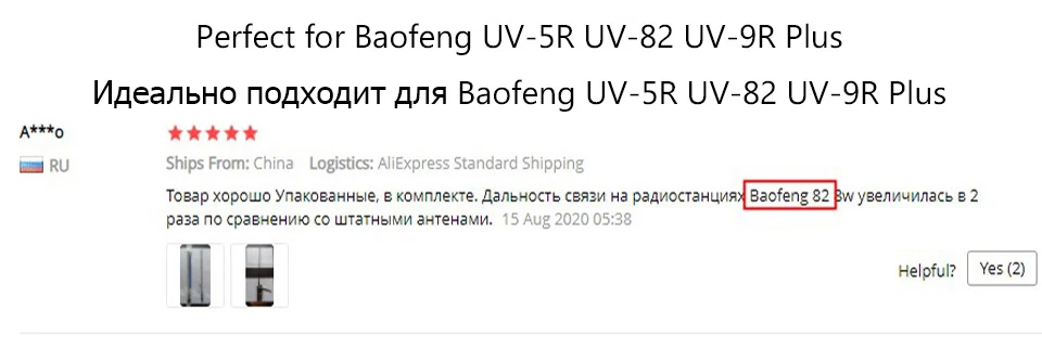 Товар соответствует описанию. Брали для радеек баофенг 82 и 5R. уже успели проверить в густом лесу - прием и передача отличные Продавец быстро отвечает на сообщения