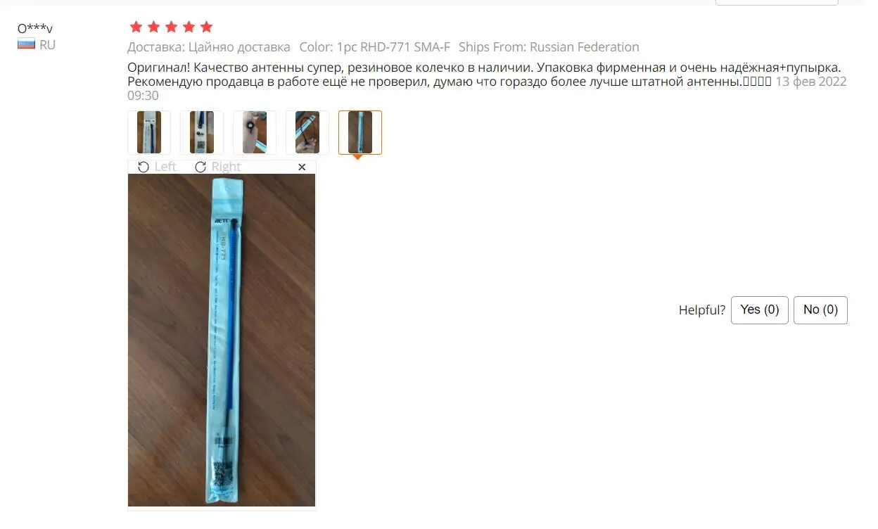 Страна: RU Color: 2pcs RHD-771 SMA-F Ships From: Russian Federation Доставка: CN_OVERSEA_GD_RU_PROV 23.12.2021