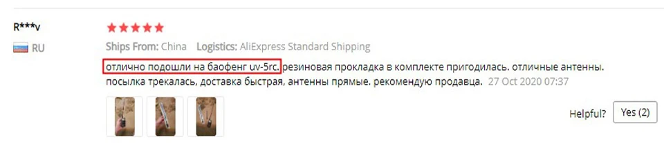 Молнией доставили в СПб за 2 дня, на Uv-5r встали как родные. Есть в комплекте прокладка, которую сложно достать из чехла. Кстати чехол не одноразовый, что хорошо, учитывая габариты. Разница с стандартной антенной чувствуются даже мне недалекому.