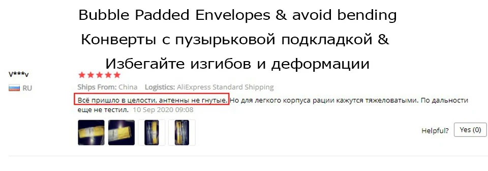 Посылка пришла за неделю. Покупаю антенны второй раз. Это самые практичные и довольно эффективные антенны для портативных радиостанций. Рекомендую покупать эти антенны взамен "игрушечных", которыми комплектуются обычно рации.