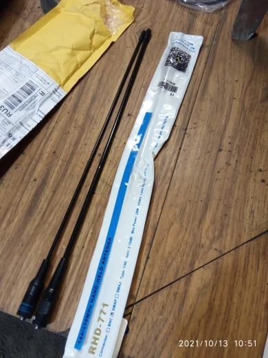 заказал комплект из двух антенн. нашел по отзывам в интернете. продавец отправил очень быстро, посылка отслеживалась на всем пути. таможню тоже быстро прошла. дошла до Санкт-Петербурга и... Неделя ожидания в СПб, сортировка.. И вот, наконец, посылка у меня в руках. Длинный желтый пакет, вскрываю и у меня в руках две упаковки с антенной в каждой. Тут же была заменена штатная на Баофенге. Немного непривычно, ведь новая антенна длиннее штатной практически в 2 раза. На дальность связи пока не проверялась, но шумы несущей слышу чаще