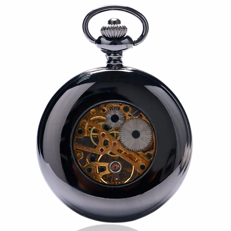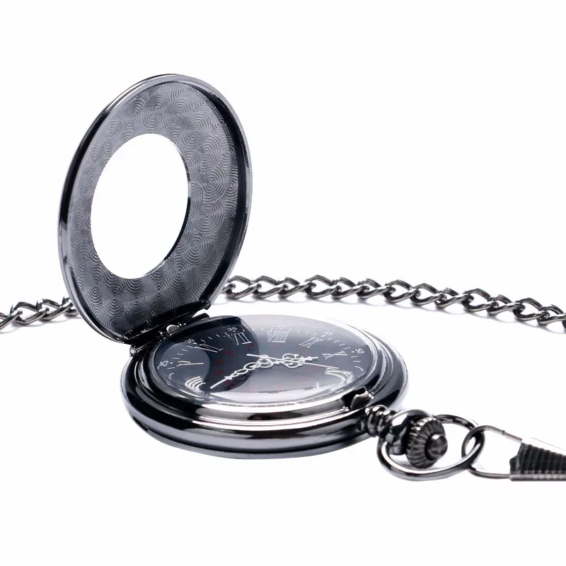 Модный стиль полый черный гладкий Чехол с белым циферблатом с римскими цифрами механические стимпанк карманные часы