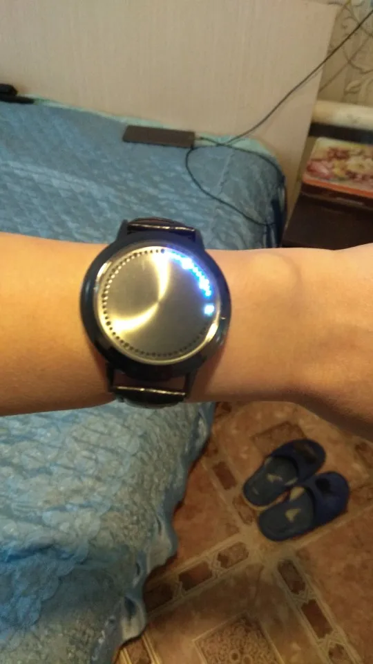 Это Волшебные часы, новая концепция дизайна. Чехол очень простой, что делает его очень минималистичным. Прикоснитесь к лицу, и очень яркие светодиоды отображают время в уникальном узоре, с одним из трех различных световых узоров перед временем. Один из плюсов заключается в том, что если лицо было случайно тронуто в течение длительного времени, то это сбросит время, поэтому носите эти часы, когда вы не ожидаете, что прикасается к другим вещам. Расскажите время со светом, И поторопитесь сделать это, красивые вещи... Вдохновляет нас замедлять и быть в данный момент.